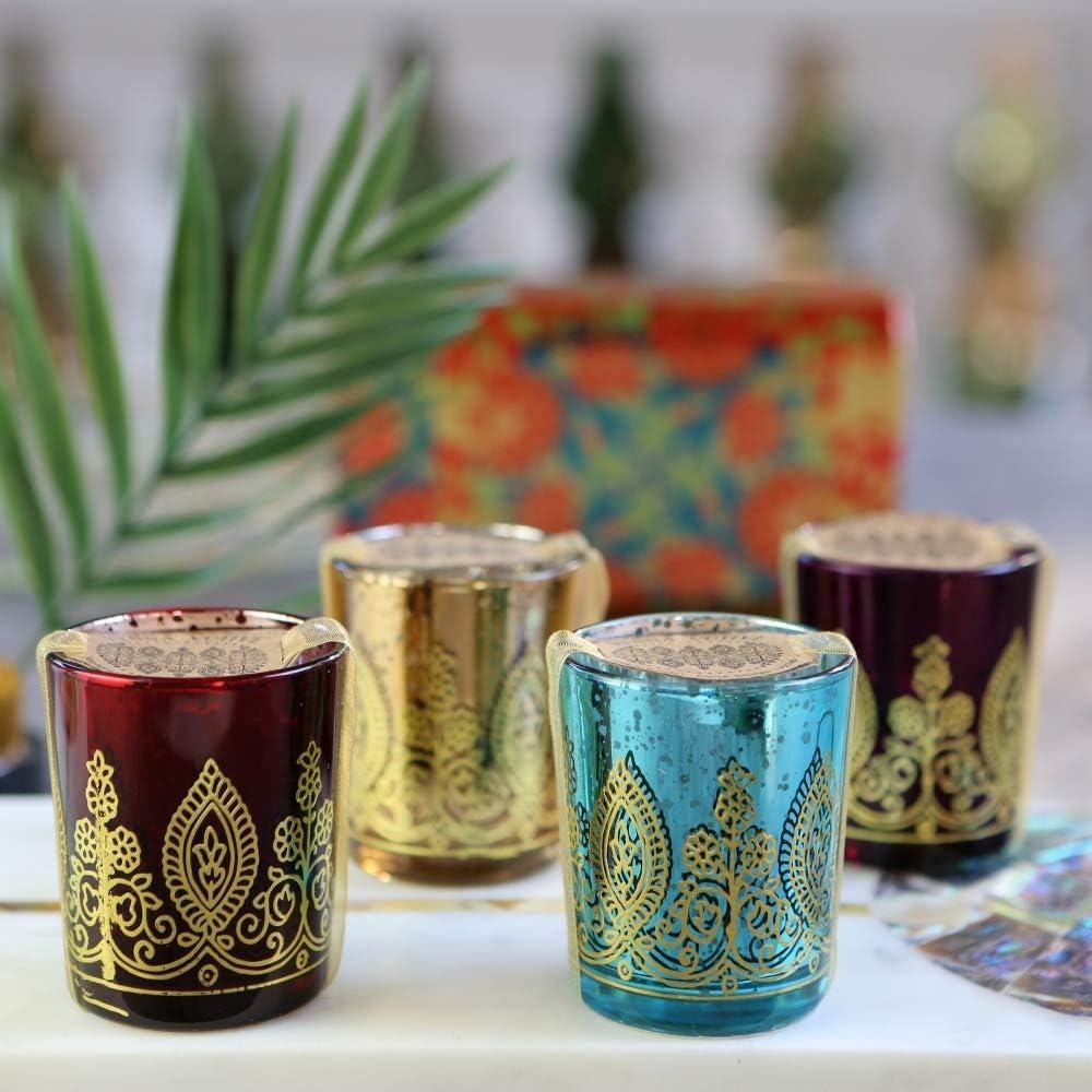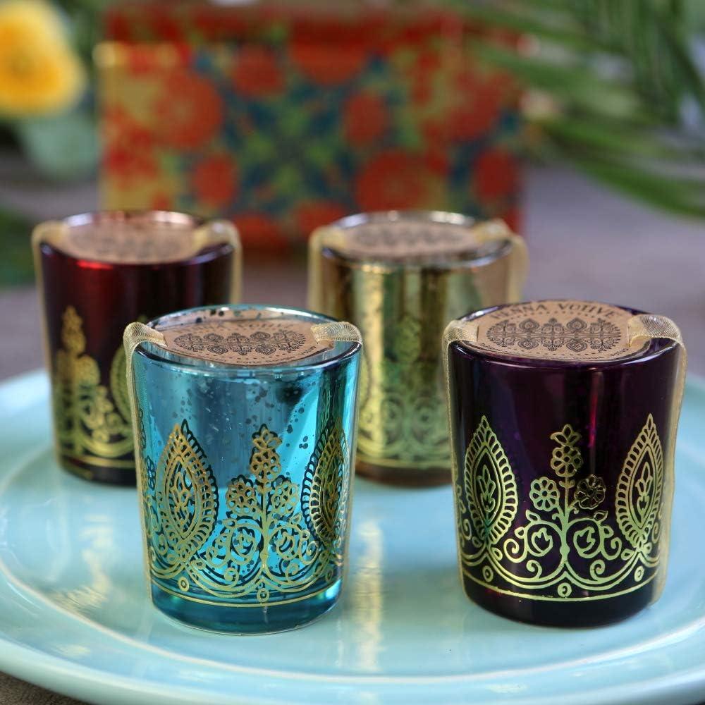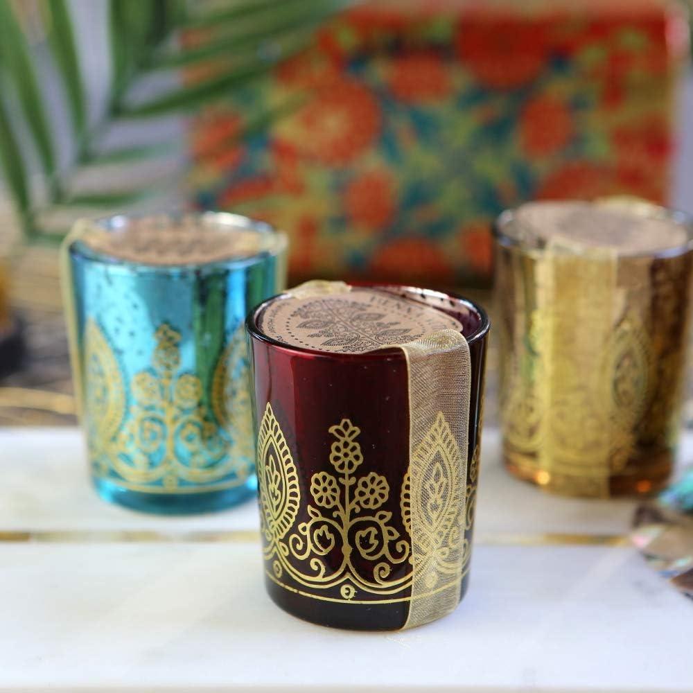 Kate Aspen 20205NA Tealight Henna Glass Votive Candle Holders, Indian Wedding Decorations and Party Favors (Set of 6), Assorted(Indian Jewel)