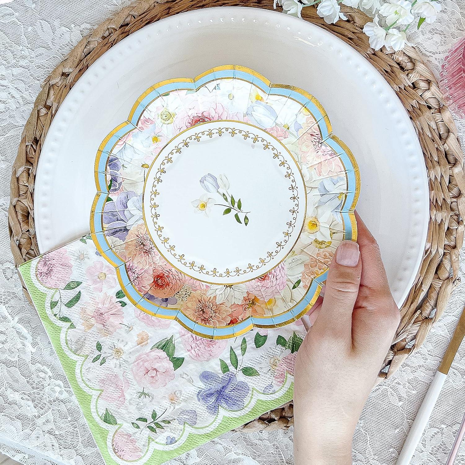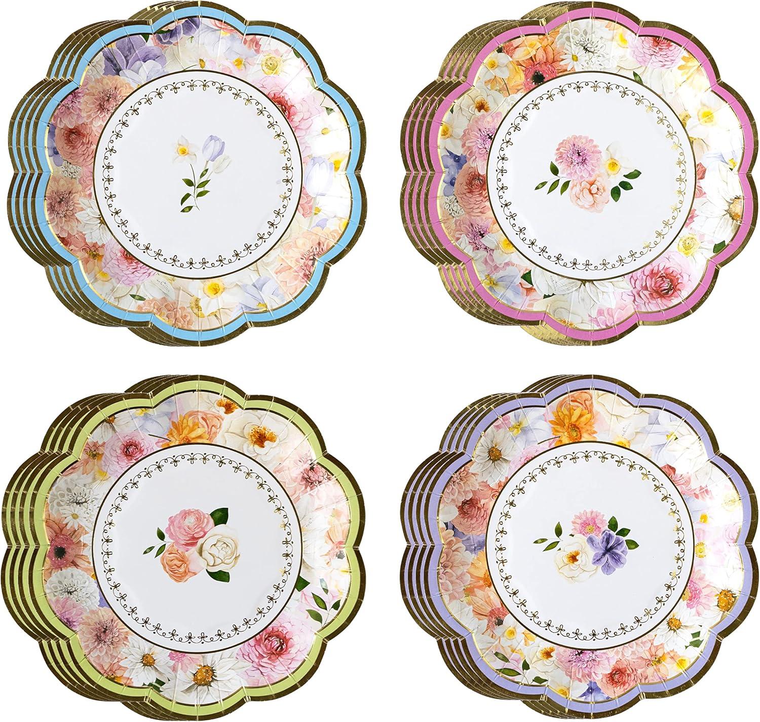 BEAUTIFUL & FUNCTIONAL – Decorative disposable paper plates with an antique floral print. Floral print is accented by gold foil details, gold foil scalloped edge and vibrant colors. Sold in a set of assorted colors will bring color and style to your table and special event.