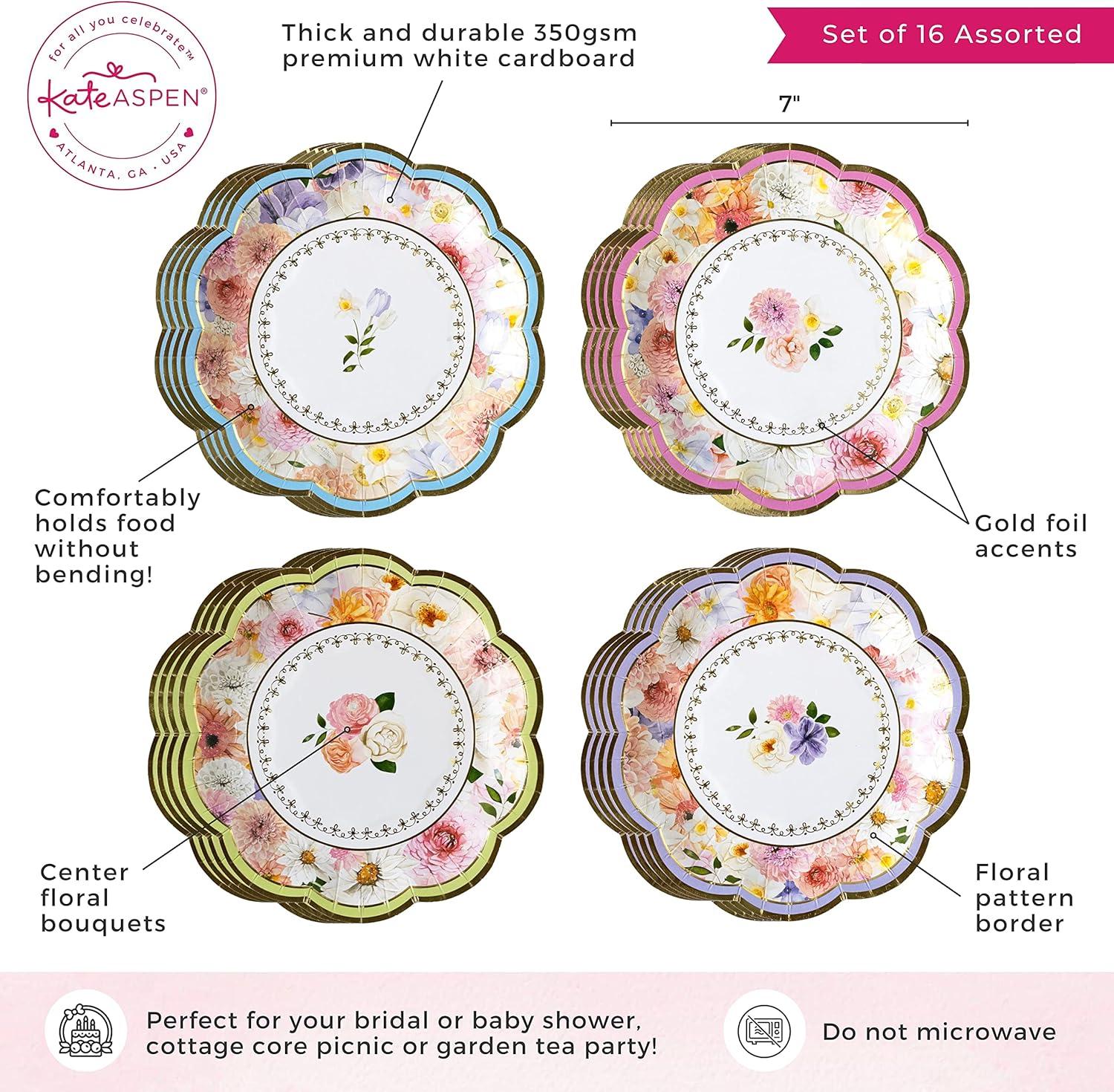 Kate Aspen 9 in. Premium Paper (Assorted Set of 16) Tea Party Decorations, One Size, 9 Inch Plates(7 Inch Paper Plates)