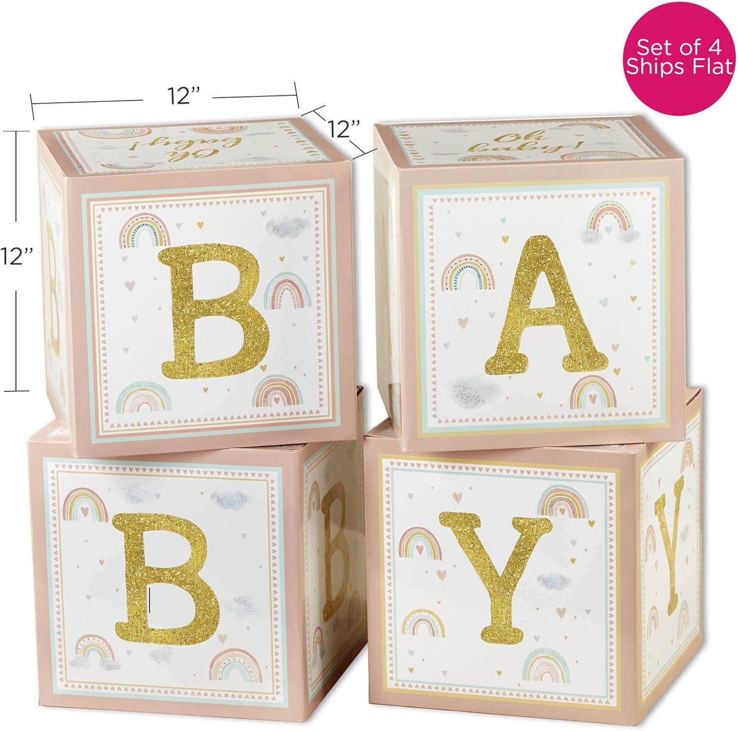 Kate Aspen A Little Honey Is On The Way Winnie Baby Boxes with Letters for Baby Shower, Classic Bear Gender Reveal Decorations, Table Centerpiece, Set of 4 Stackable Boxes(Boho Rainbow)