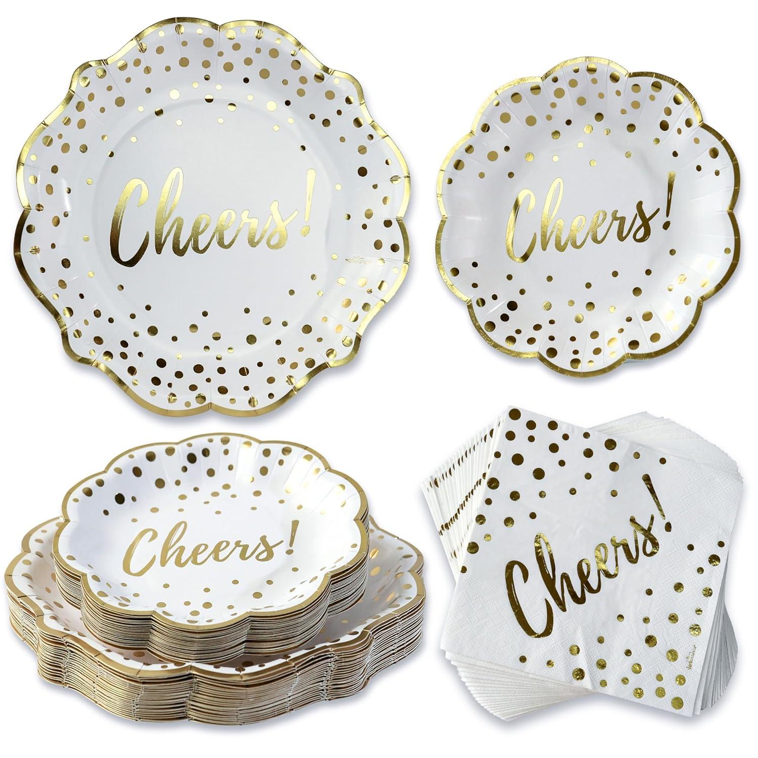 Elegant Bridal Shower Decorations And More – Make a lasting impression with this 72-piece wedding paper plates and napkins set by Kate Aspen. Designed with scalloped edges and metallic gold accents, it’s ideal for bridal shower decorations, rehearsal dinners, and wedding reception celebrations. The Always & Forever message adds a meaningful touch to any “Let the Adventure Begin” or just married themed party.