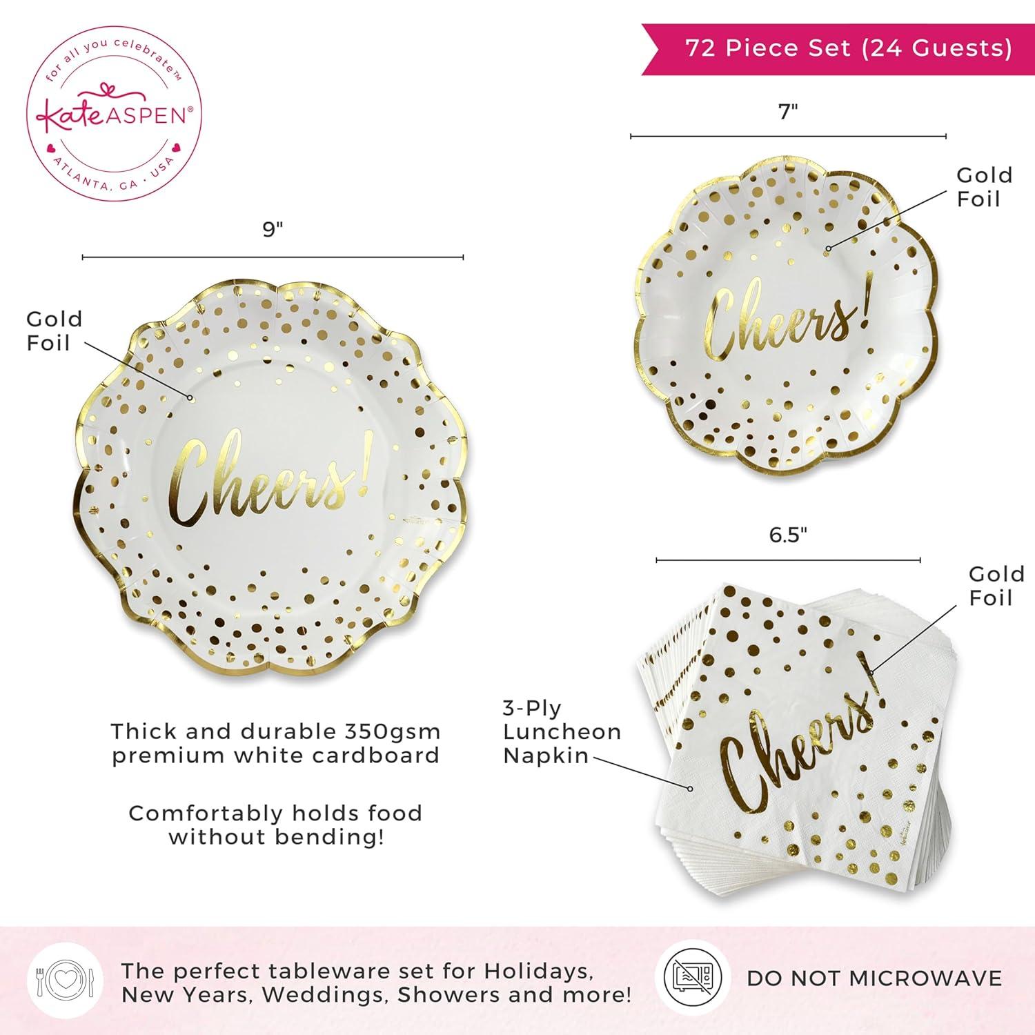 Kate Aspen Always & Forever Wedding Paper Plates and Napkins Set – 72 Piece Wedding Plates Disposable Party Tableware for 24 Guests – Bridal Shower Decorations, Engagement Party Decor(One Size)