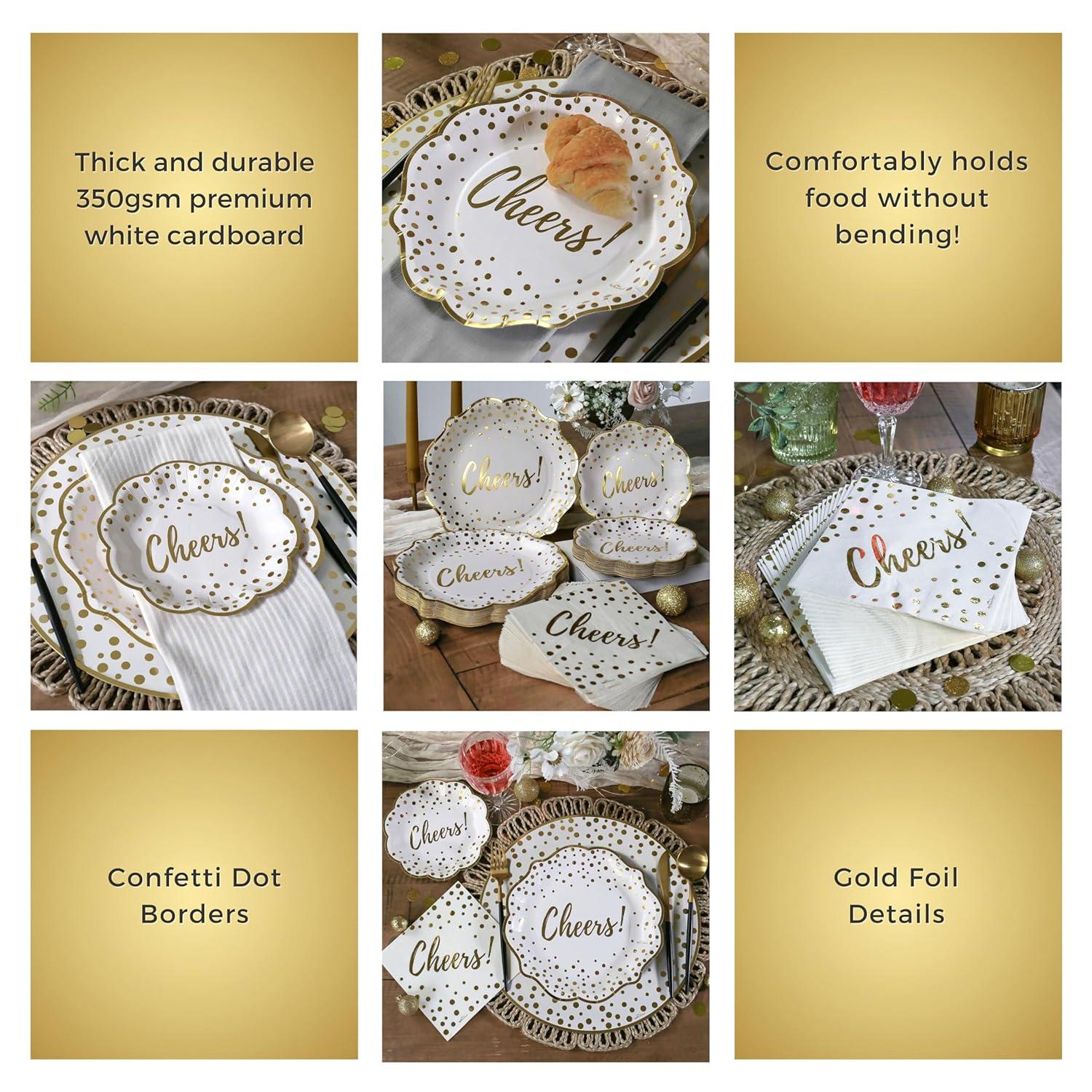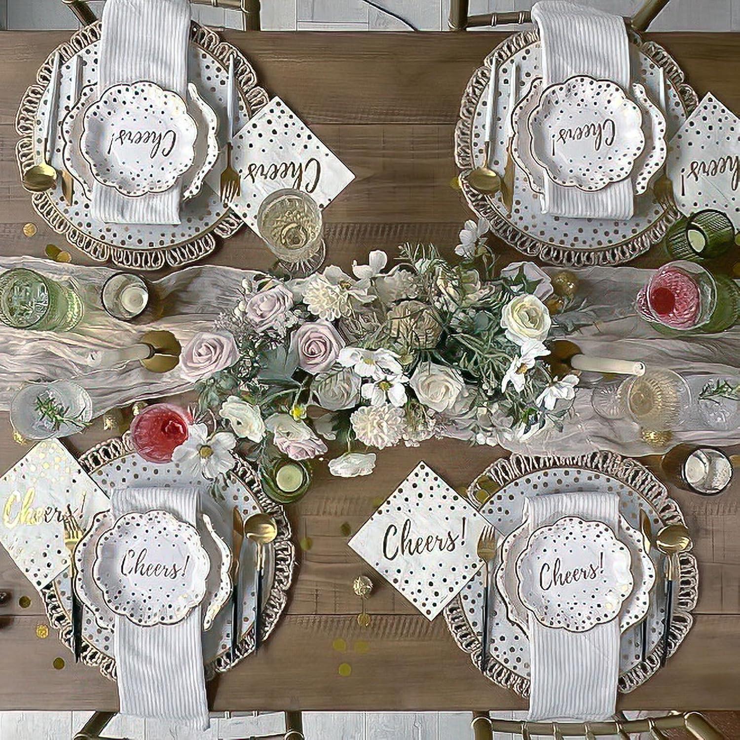 Coordinated Design With Easy Clean-Up – Each piece features a cohesive white and gold design, perfect for wedding decorations for reception tables or grazing stations. With elegant foil script and scalloped edges, the matching bridal shower plates and napkins sets offer a refined look without the mess. Simply toss or recycle after use, making clean-up quick and stress-free for busy hosts.
