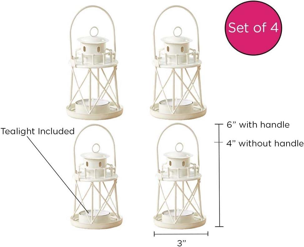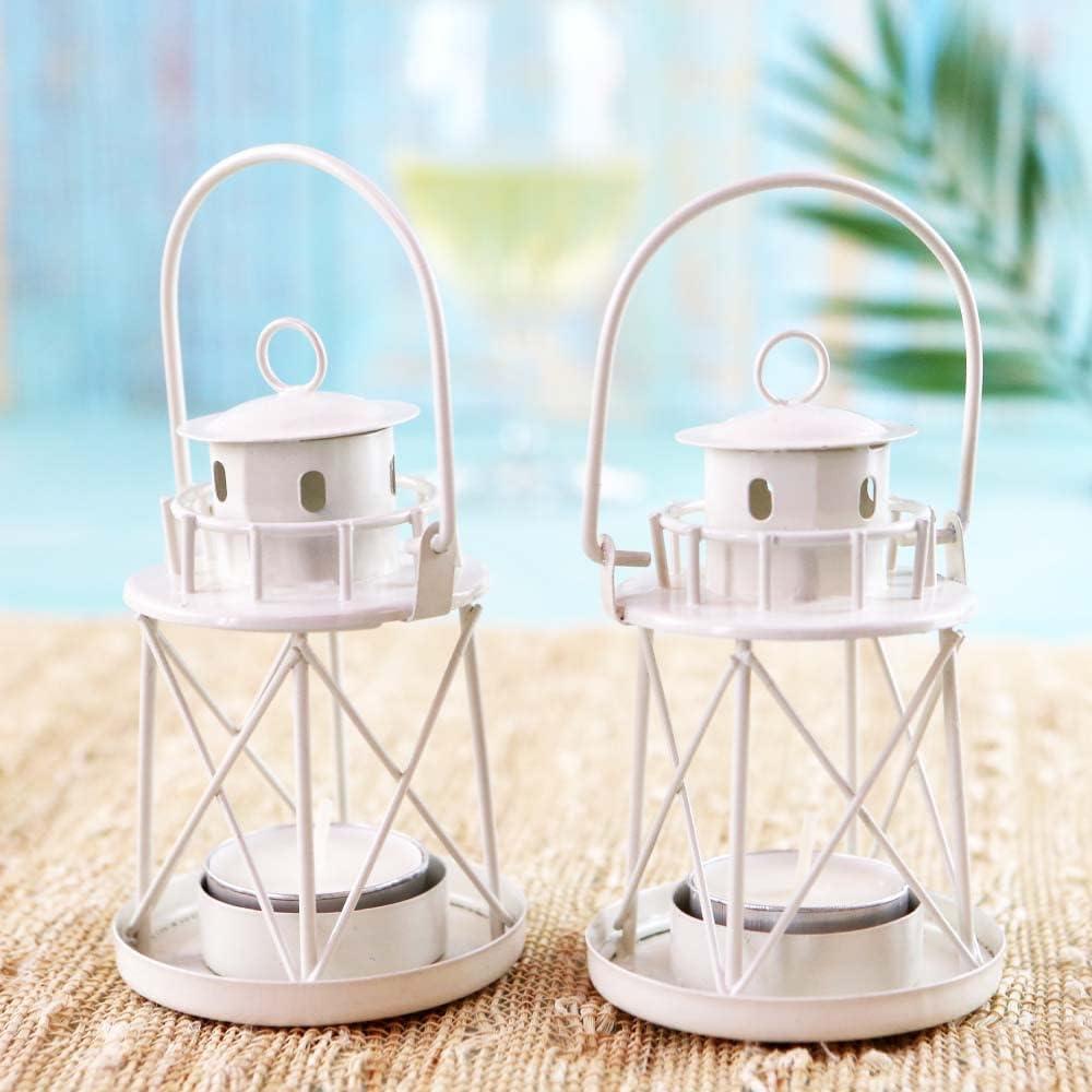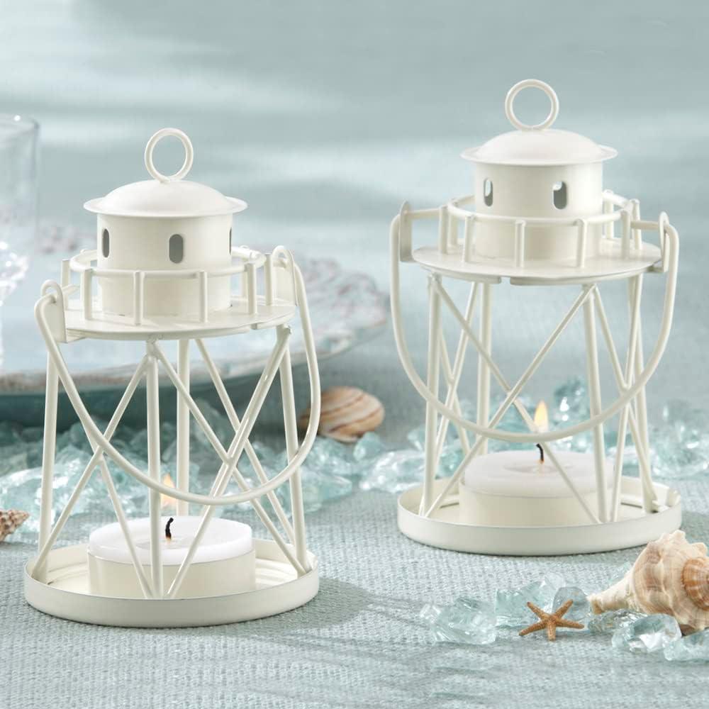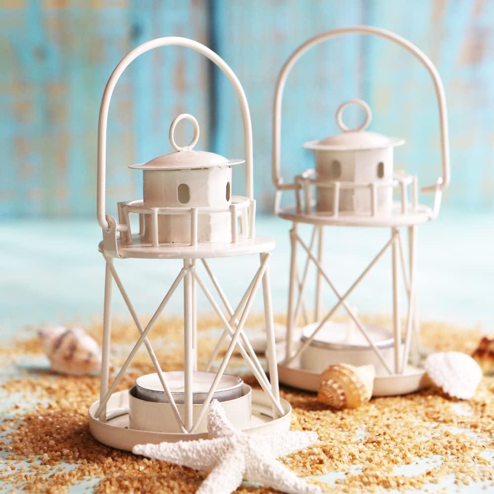 Kate Aspen by The Sea Lighthouse Tea Light Holders (Set of 4), Beach Wedding Favors, Nautical Decor, Coastal Decor, Ocean Decorations, White (14143WT)(4PC)