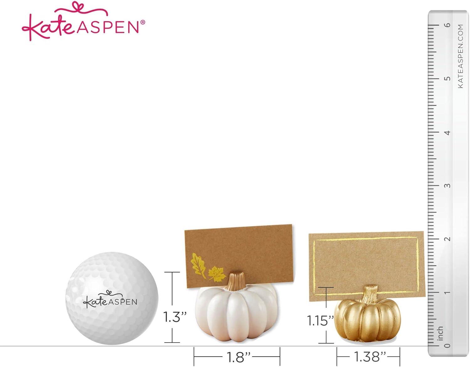Welcome your guests in festive fall fashion with the Kate Aspen Mini Gold Pumpkin Place Card Holders, a charming and functional accent for Thanksgiving table settings, fall weddings, or autumn brunches. Each set includes six mini pumpkin place card holders crafted from durable gold-finished polyresin, along with matching kraft paper name cards trimmed in elegant gold foil for a polished presentation. These pumpkin place cards are perfect for labeling each guest's seat at the table, identifying food items on a buffet, or enhancing your Thanksgiving table name cards with a touch of seasonal flair. Whether you're styling Friendsgiving decor or preparing a warm fall bridal shower, these fall place card holders add sophisticated charm while complementing rustic, boho, and Anthropologie-inspired themes. Use them as Thanksgiving place card holders, pumpkin name card holders for dinner parties, or even wedding table numbers in fall-themed events. The size is ideal for blending seamlessly into your tablescape while still catching the eye—perfect for those who appreciate decorative pumpkins for home decor and thoughtful entertaining details. These gold pumpkin decorations also serve as memorable Thanksgiving favors or hostess gifts, especially when paired with coordinating fall decor pumpkins, white pumpkin accents, or pumpkin table decor pieces. From white Thanksgiving decor to autumn place card holders that blend utility with warmth, this small pumpkin decor set adds a cozy finishing touch that elevates every fall gathering with intention and grace.
