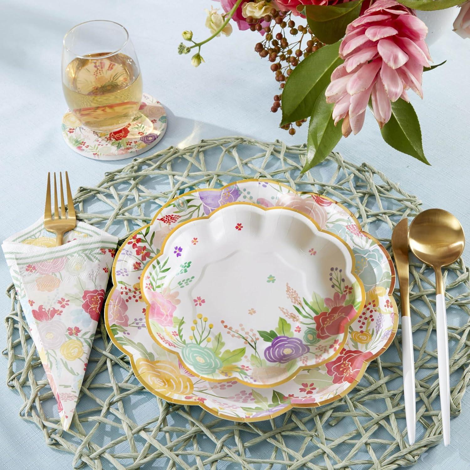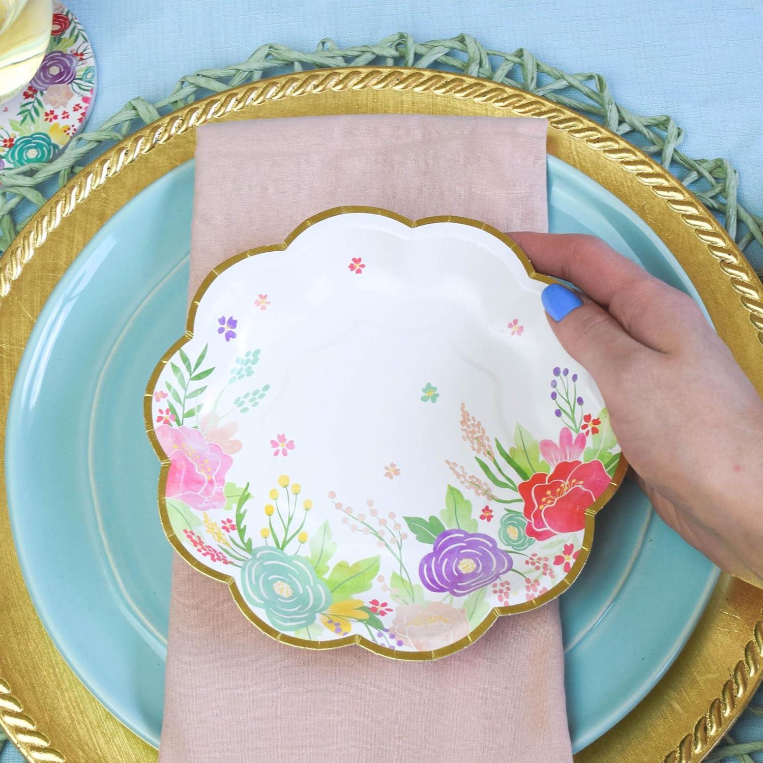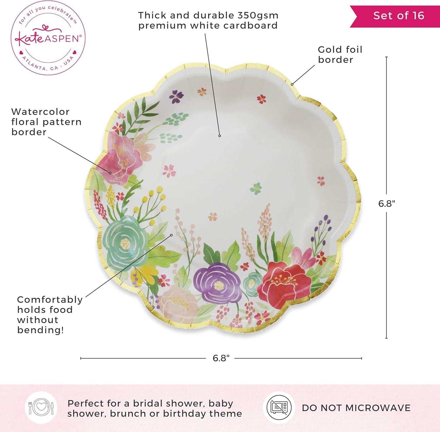 Kate Aspen Garden Blooms 9 in. Premium Decorative Paper Plates | Party Supplies (350 GSM weight -Set of 16) – Perfect for Weddings, Bridal Brunches, Bridal/ Baby Showers(7 in. Floral Paper Plates)