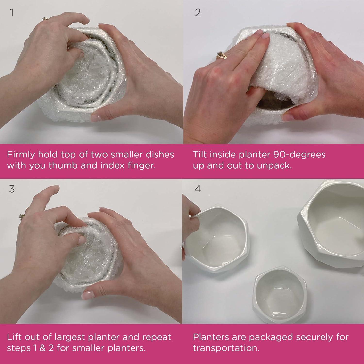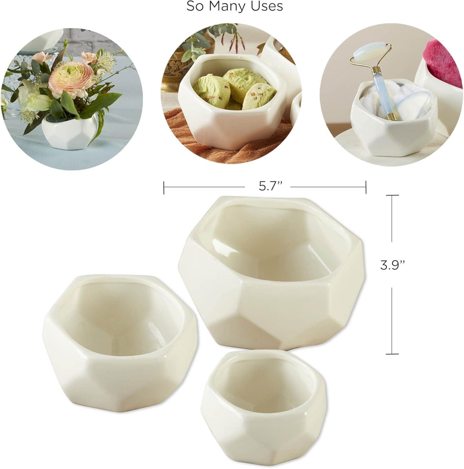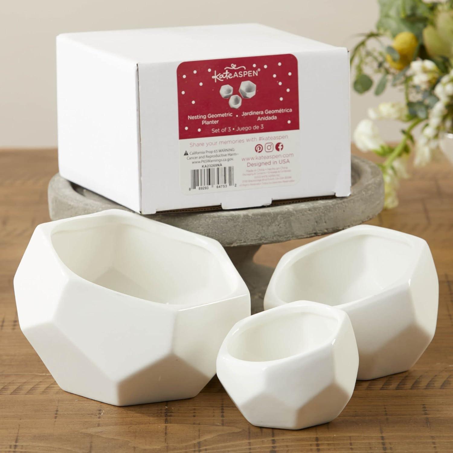 Kate Aspen Geometric Ceramic Planters, Mini Decorative Bowls (Set of 3) Small- Succulent Pots, Modern Decor, Shelf Decor, Desk, Table Décor, White(Small Medium and Large)