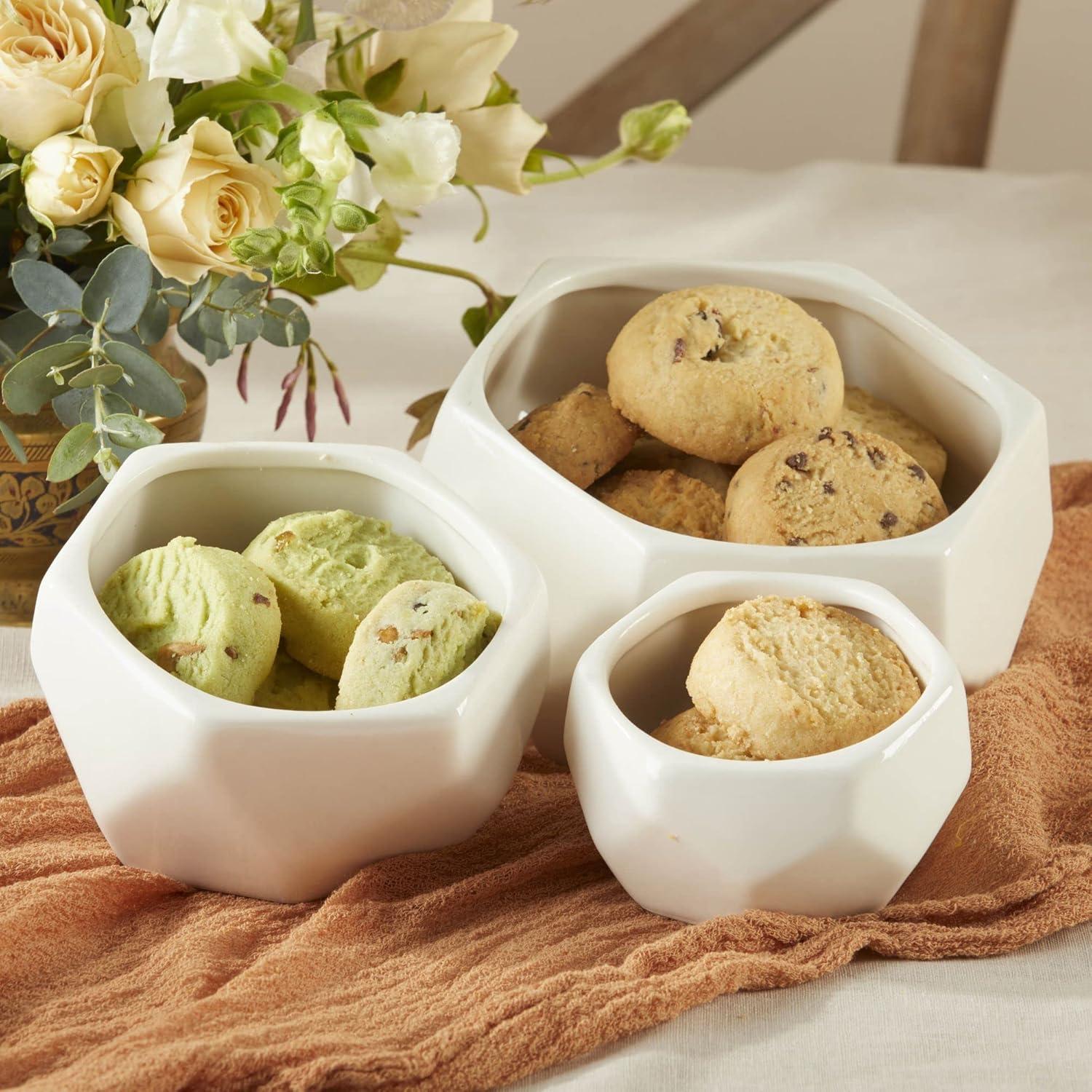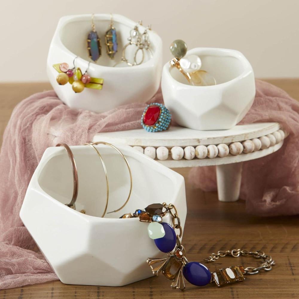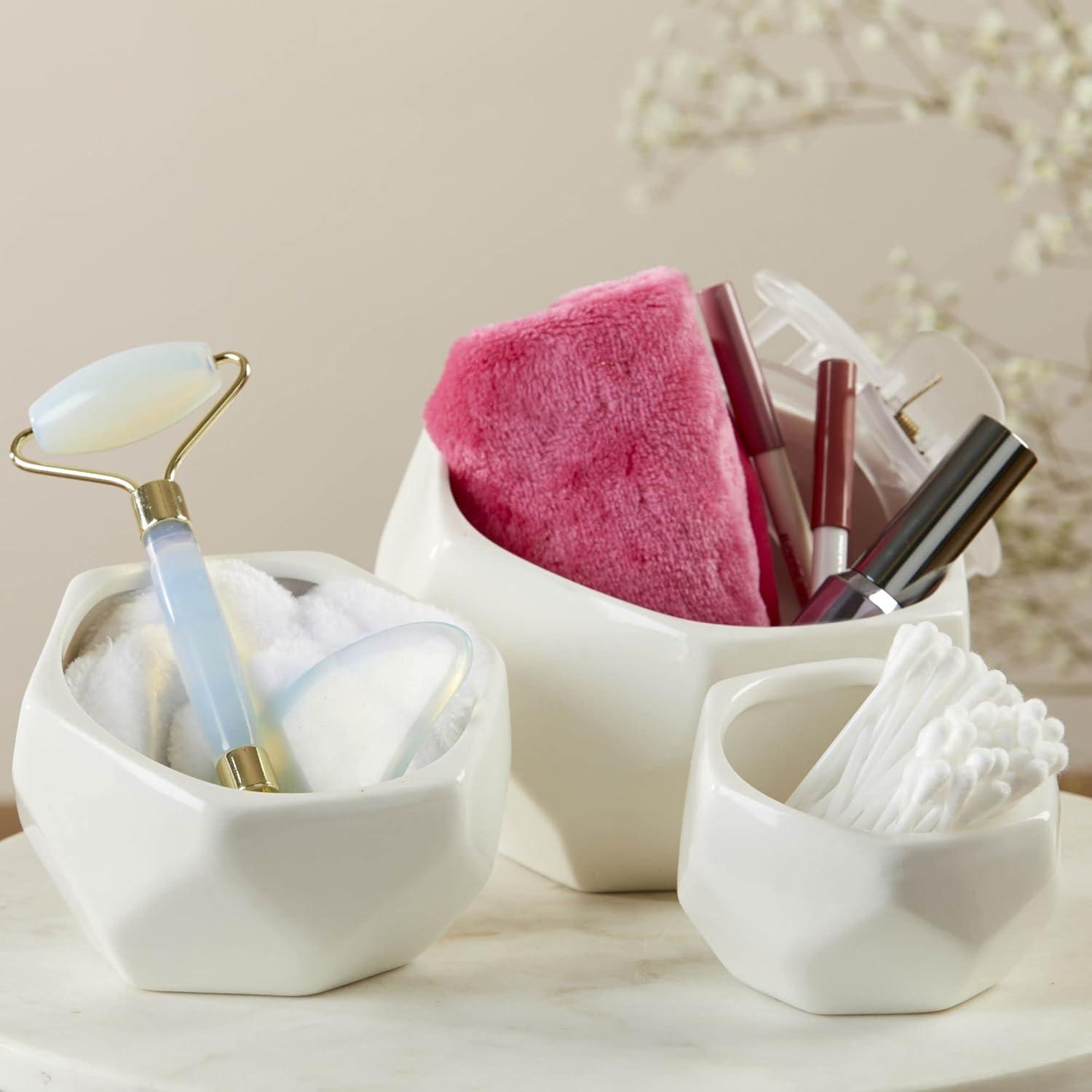 Kate Aspen Geometric Ceramic Planters, Mini Decorative Bowls (Set of 3) Small- Succulent Pots, Modern Decor, Shelf Decor, Desk, Table Décor, White(Small Medium and Large)