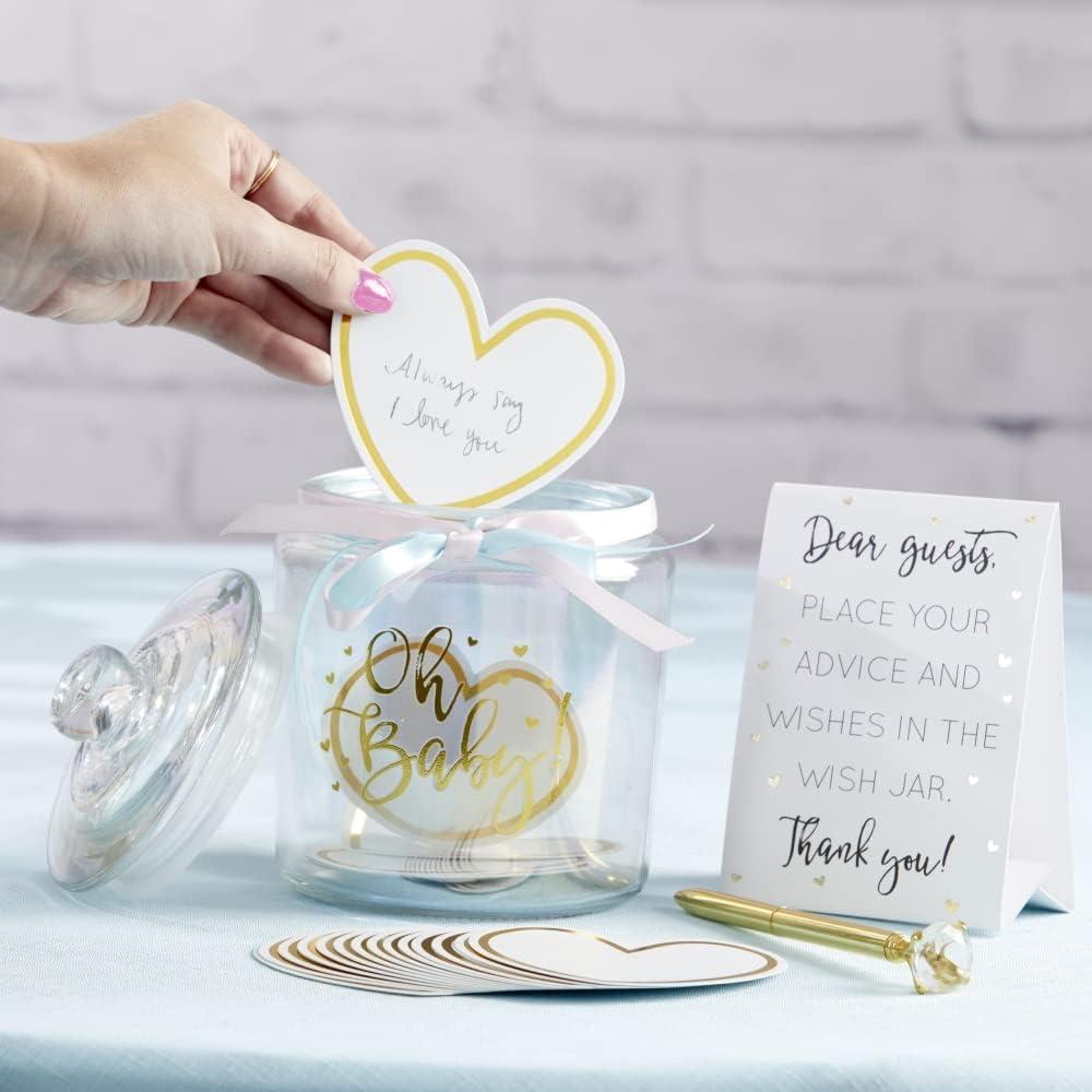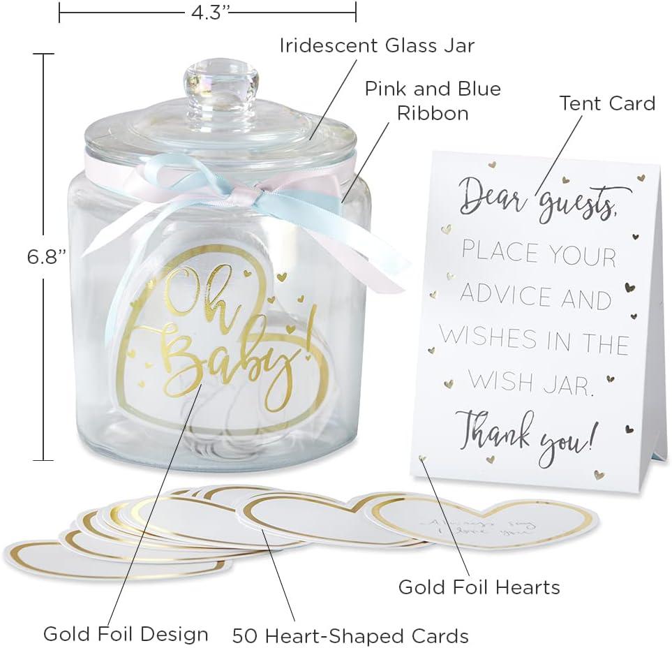 Kate Aspen Iridescent Baby Shower Decorations, Wishes For The Baby Jar with 50 Heart Shaped Advice Cards Guest Book, Iridescent Decor, Oh Baby(Oh Baby Iridecent Wish Jar)