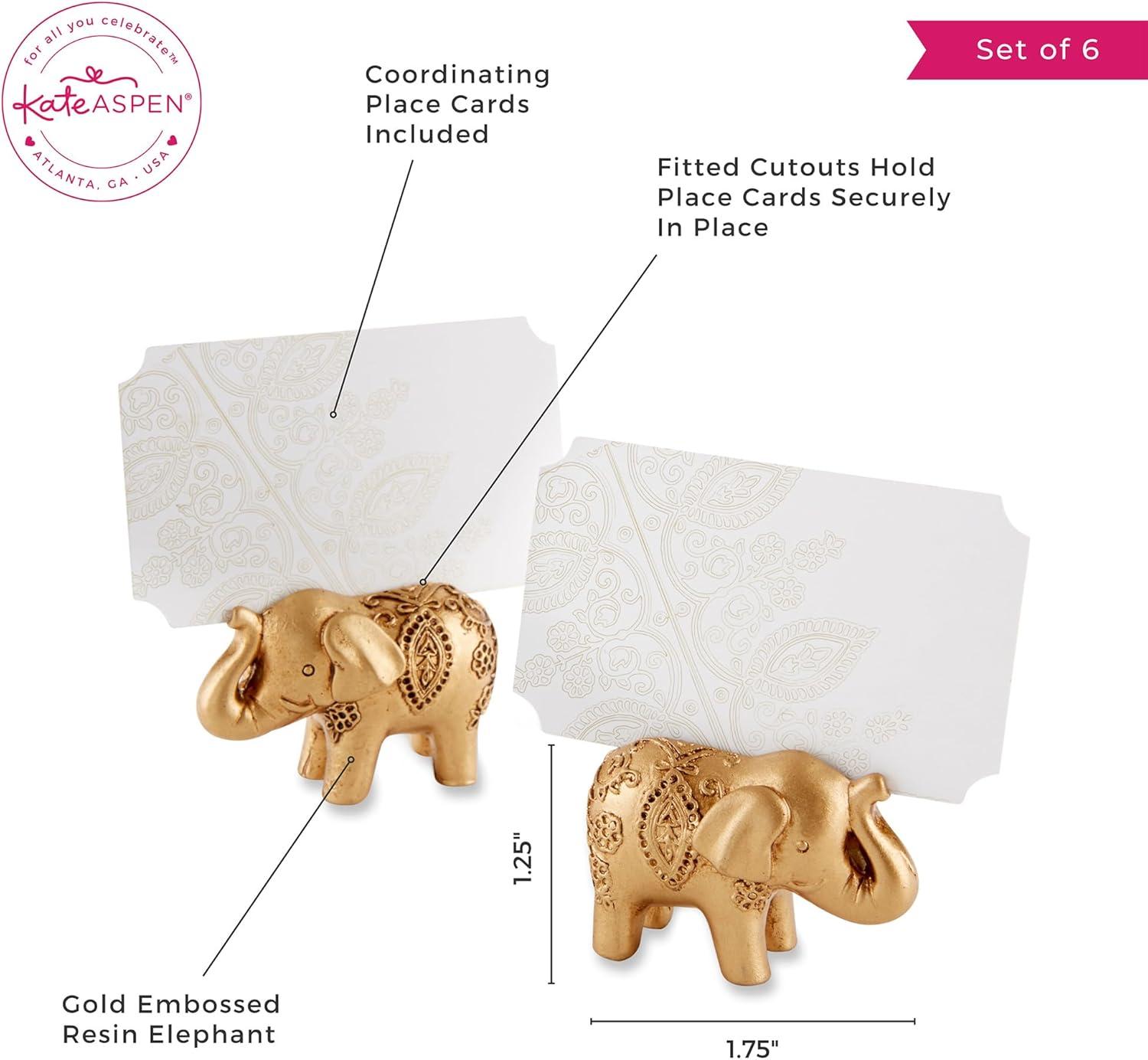 Kate Aspen Lucky Golden Elephant Place Card Holders, Photo Holders, Party Favors, Indian Wedding Decorations, Placecards, Place Setting, (Set of 6)