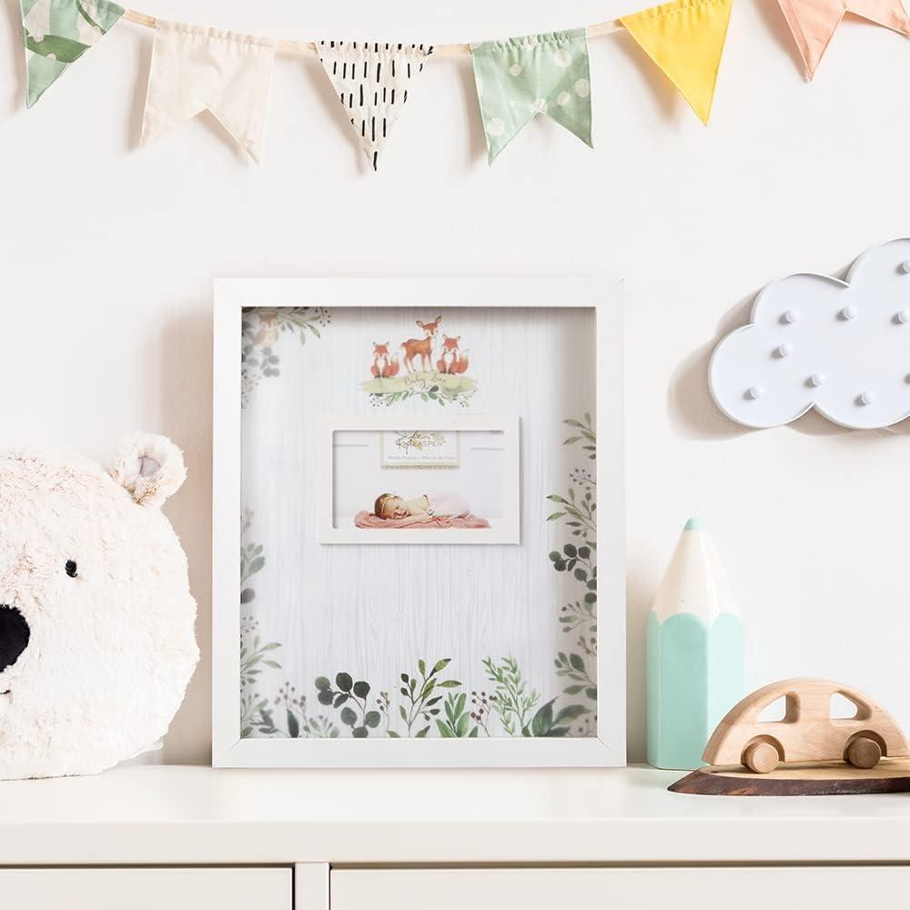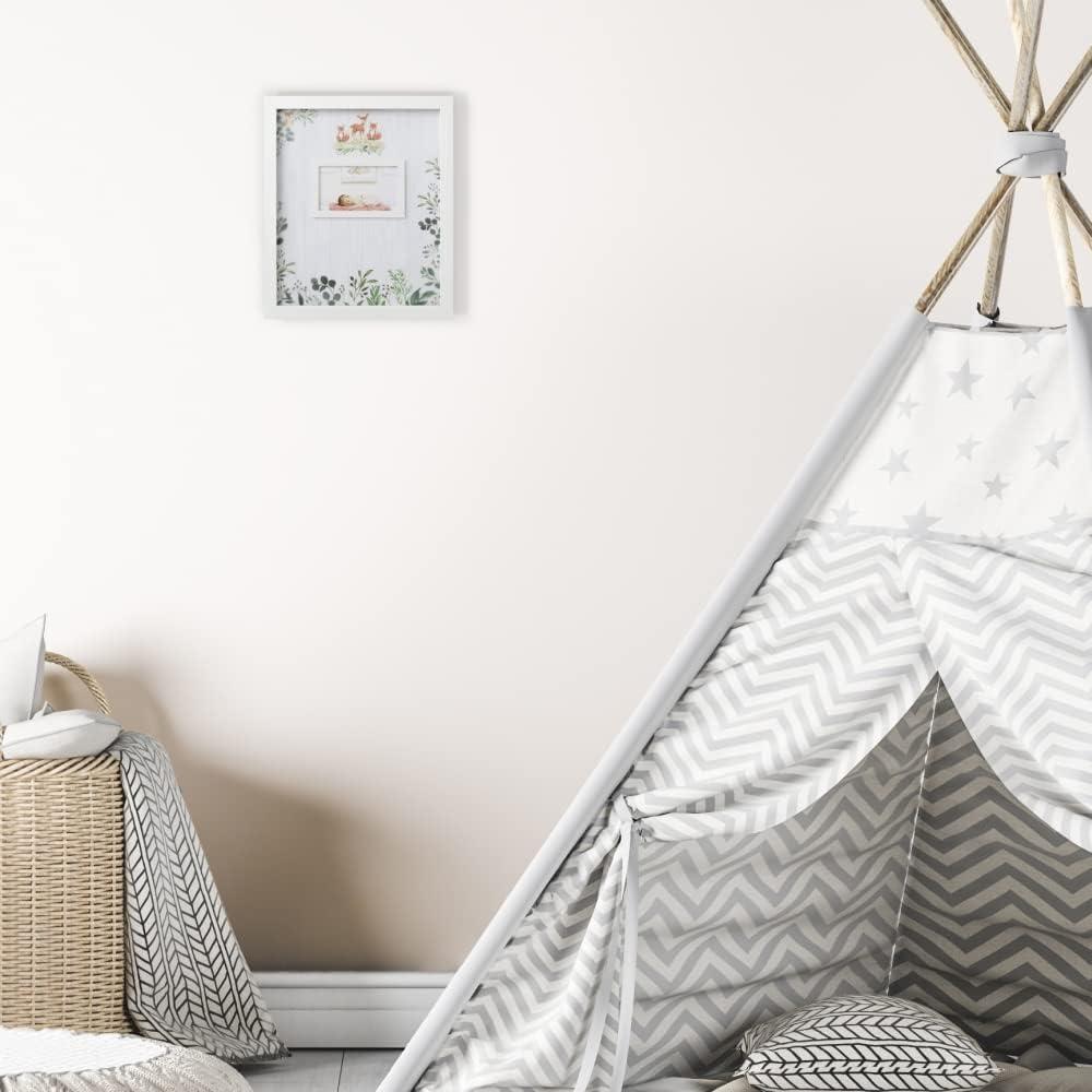 Kate Aspen baby shower guest book alternative frame is a 3d guest book alternative that utilizes thin wooden hearts bearing your guests' Signatures and places them inside of a beautiful gender neutral shadowbox frame. This guest book idea allows you to take a very special memory and hang it on your wall or display it on a table top for many years to come. The baby shower guest book alternative uses shades of white, light Gray, and gold to create a new type of guest book that fits right in with any baby shower theme you have in mind!