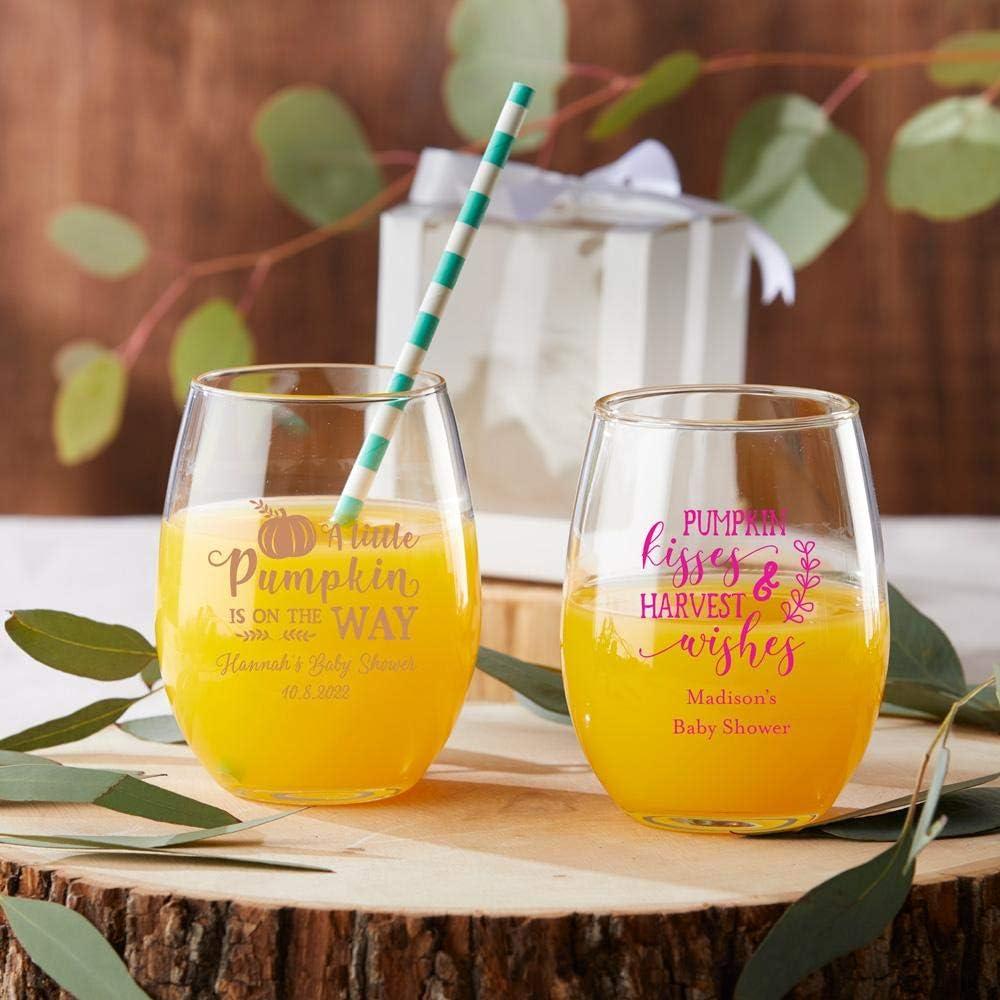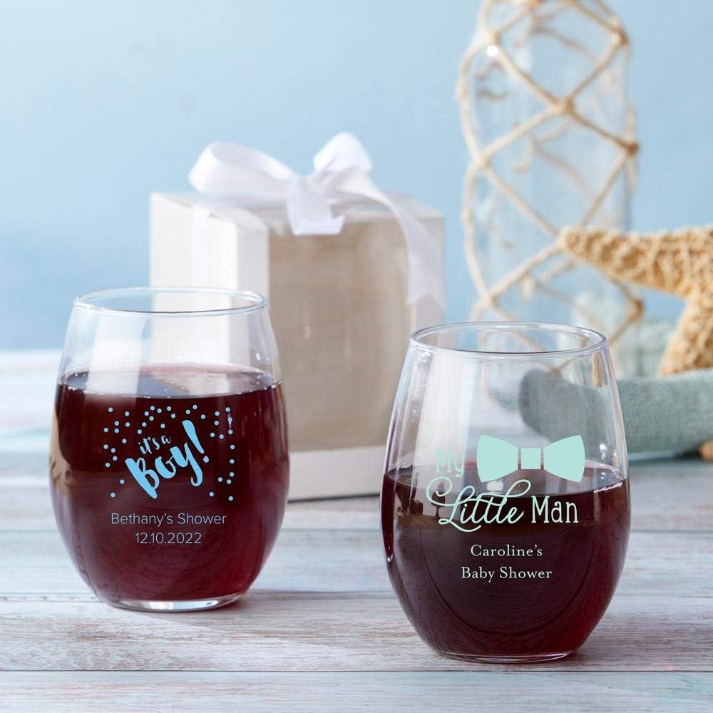 Kate Aspen Personalized 9 oz. Stemless Wine Glass – 36pcs/Black – Drinking Glasses and DIY Favor Decor for Baby Shower Party with Customized Designs Text Lines(Black)