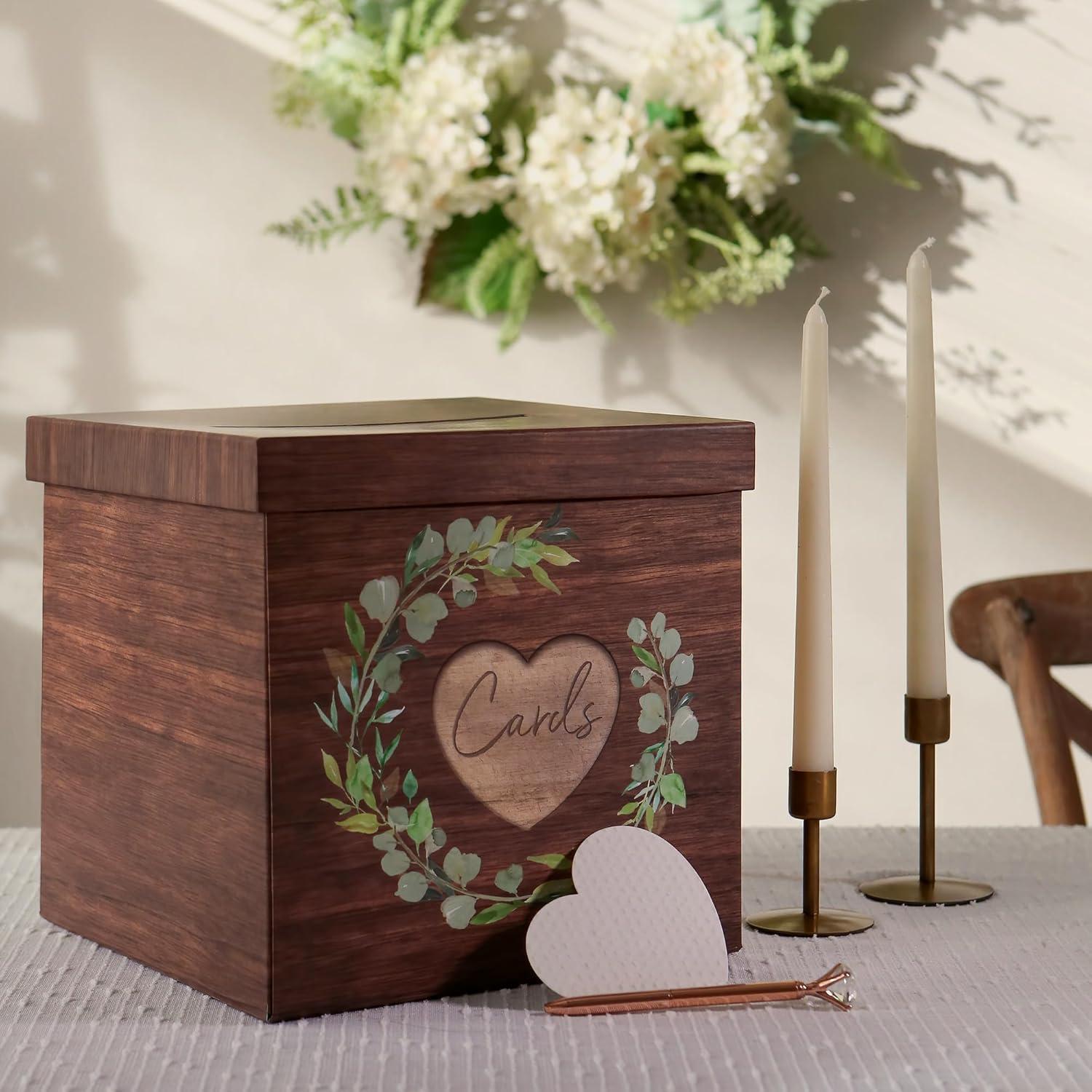 Kate Aspen Rustic Burlap & Lace Gift / Wedding Card Box, Money Box, Farmhouse Wedding Decorations For Reception – Also Perfect for Boho Baby Showers, Birthdays, Graduation(Brown Rustic Wood)
