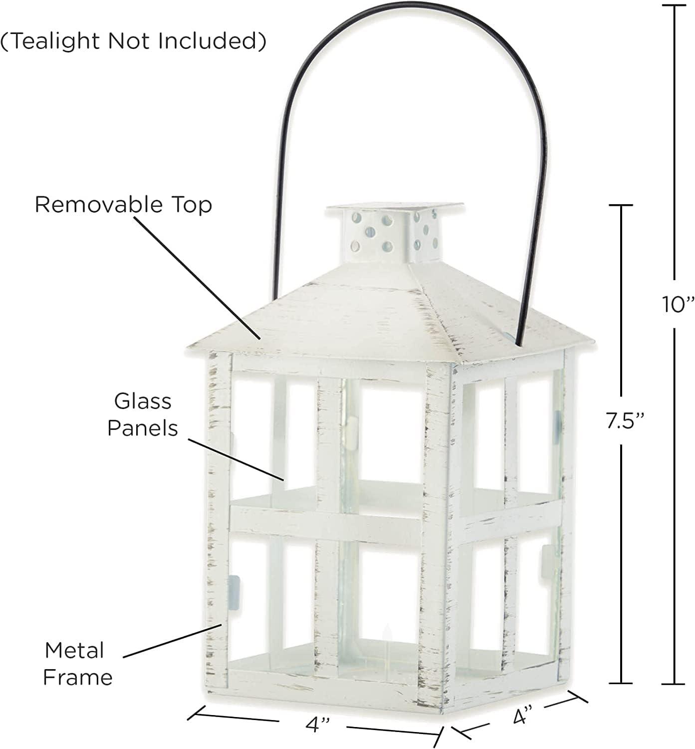 Vintage inspired – Rustic Farmhouse White metal lantern with vintage distressed details; glass windows and metal wire swing handle. Pair multiple lanterns or with different size and color Kate Aspen lanterns for a custom look.
