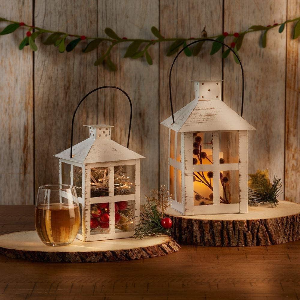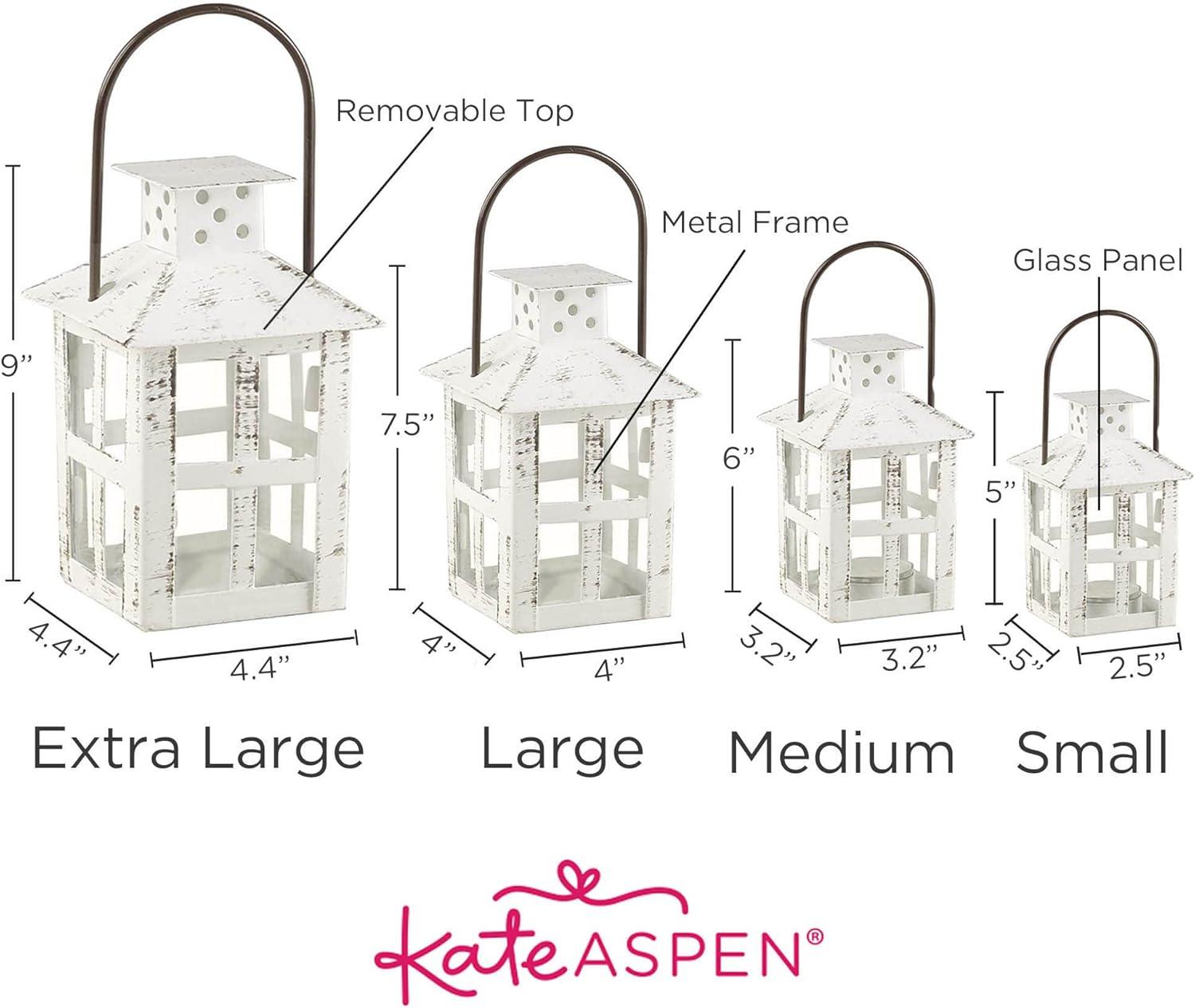 Kate Aspen Rustic Farmhouse Decor White Candle Holder Lantern Decorative (5 Inch), Wedding Decoration, Centerpiece Table Decorations, Home Decor, Shelf Decor, Fireplace Lantern(7.5 inch White Decorative Lantern)