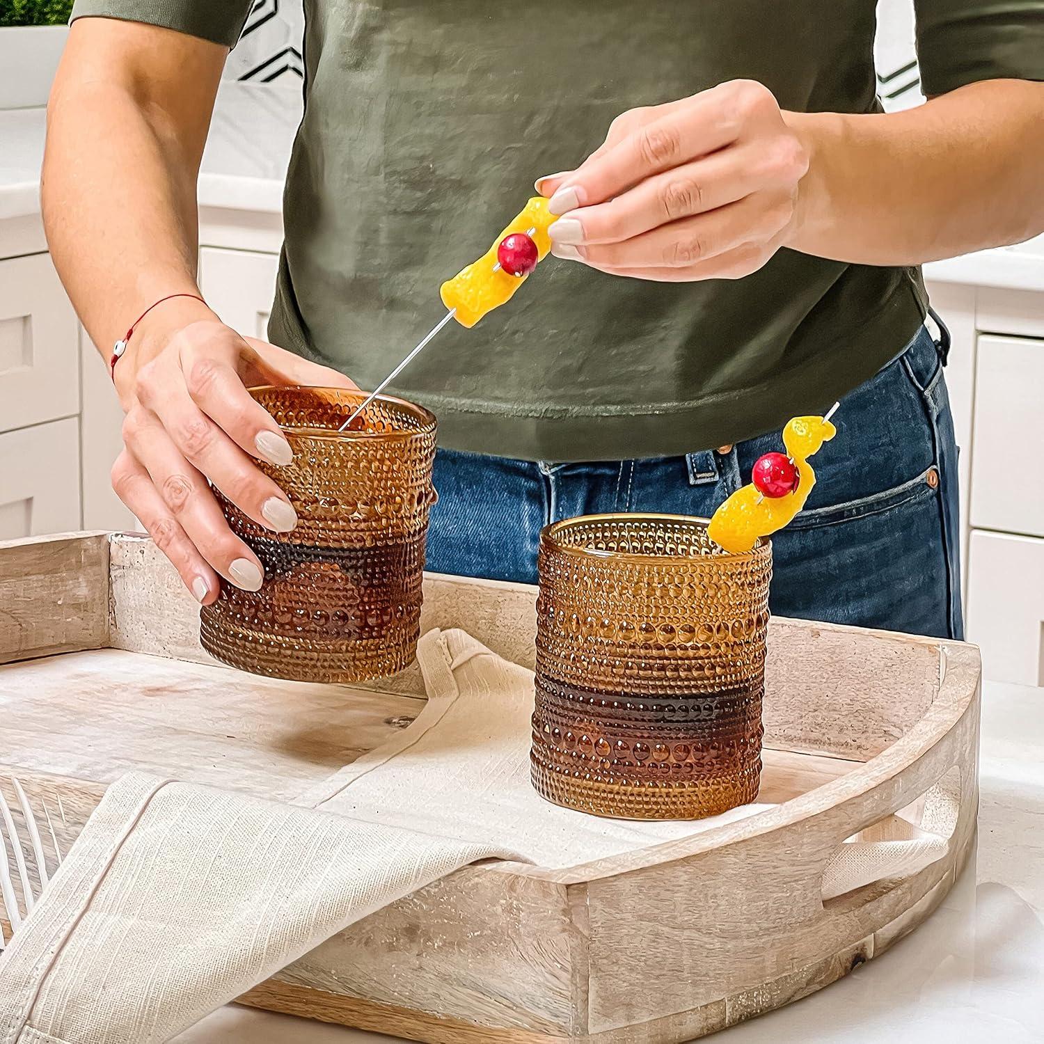 Vintage-inspired design and embossing that are long lost to bring you a glass that you will be proud to serve your guest with! They will elevate every cocktail or signature mocktail. They look great on a bar cart or with exposed cupboards. Great for floating shelves or behind your favorite bar.