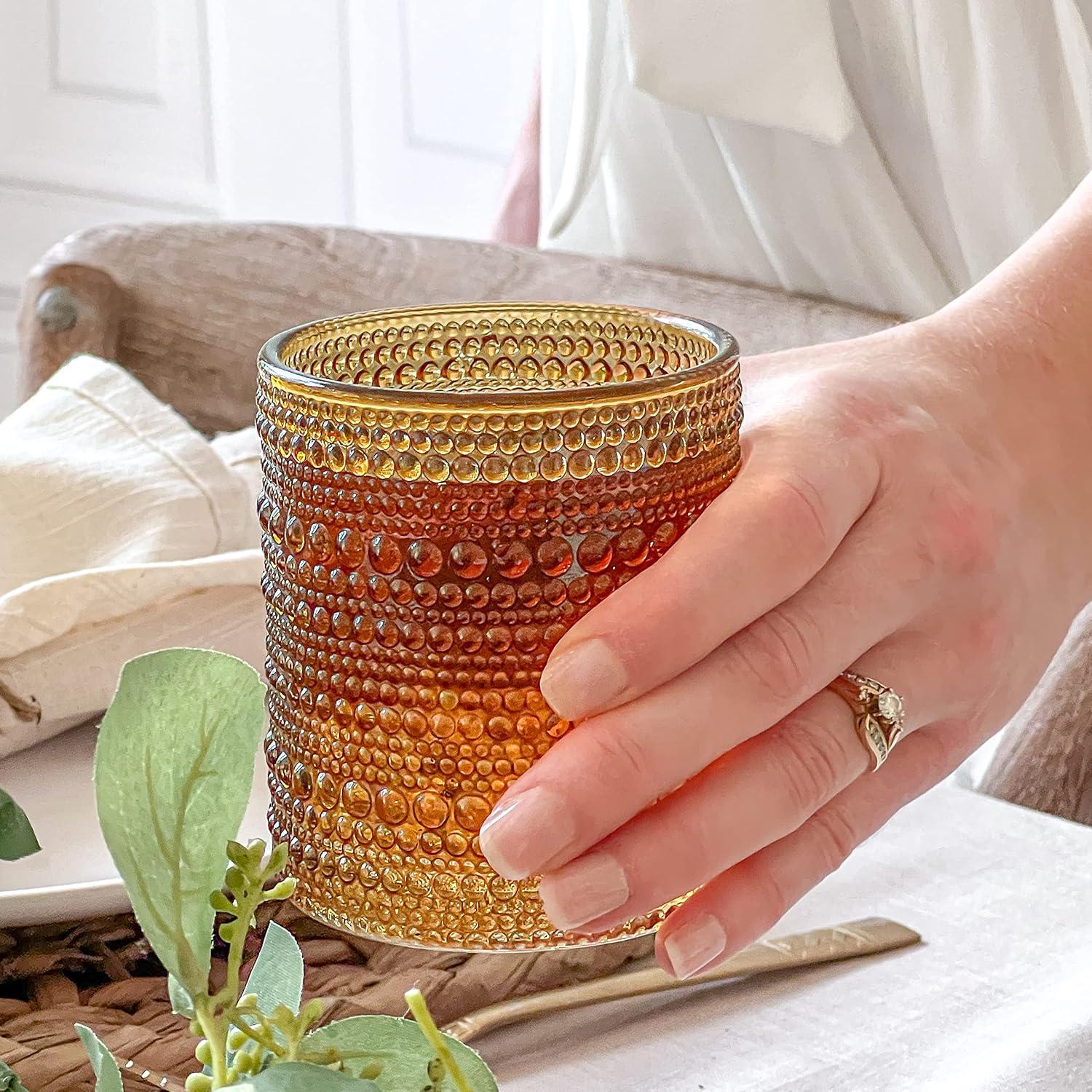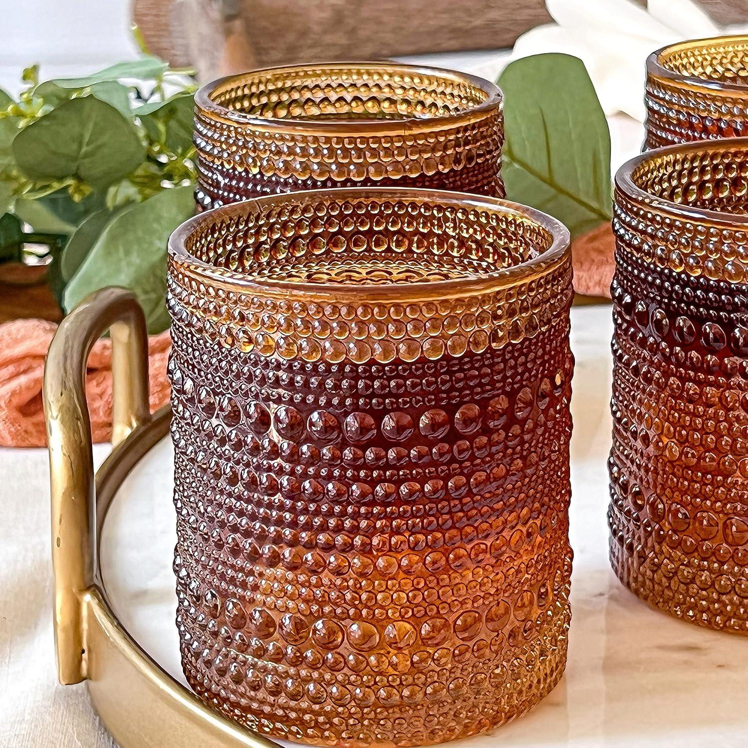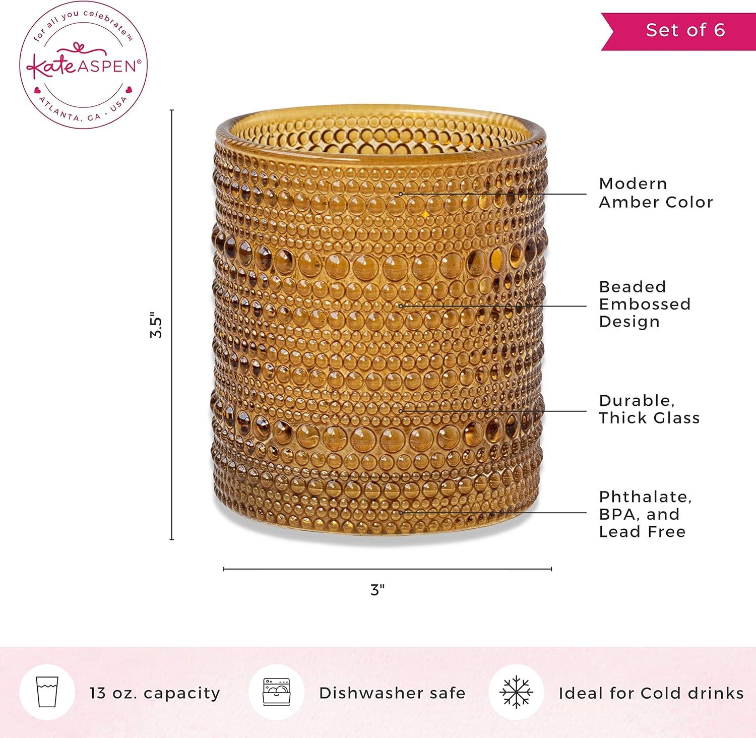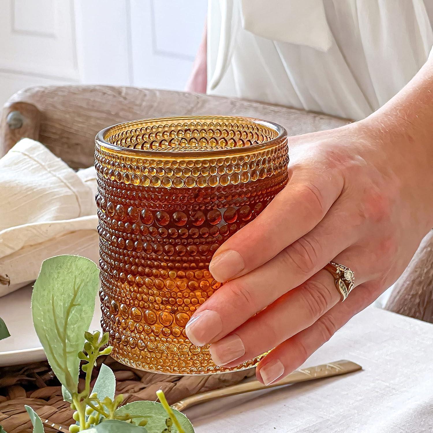 Kate Aspen Sage Green Hobnail Beaded Drinking Glasses Set of 6-10 oz Vintage Glassware Set Cocktail Glass Set, Juice Glass, Water Cups | Makes A Great Hostess Gift or Gift for New Home Owners(Amber)