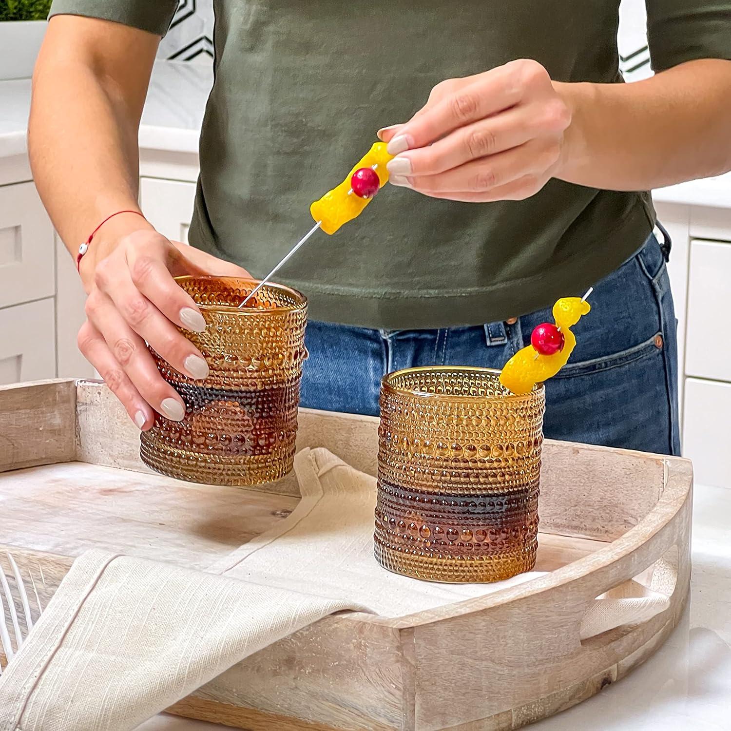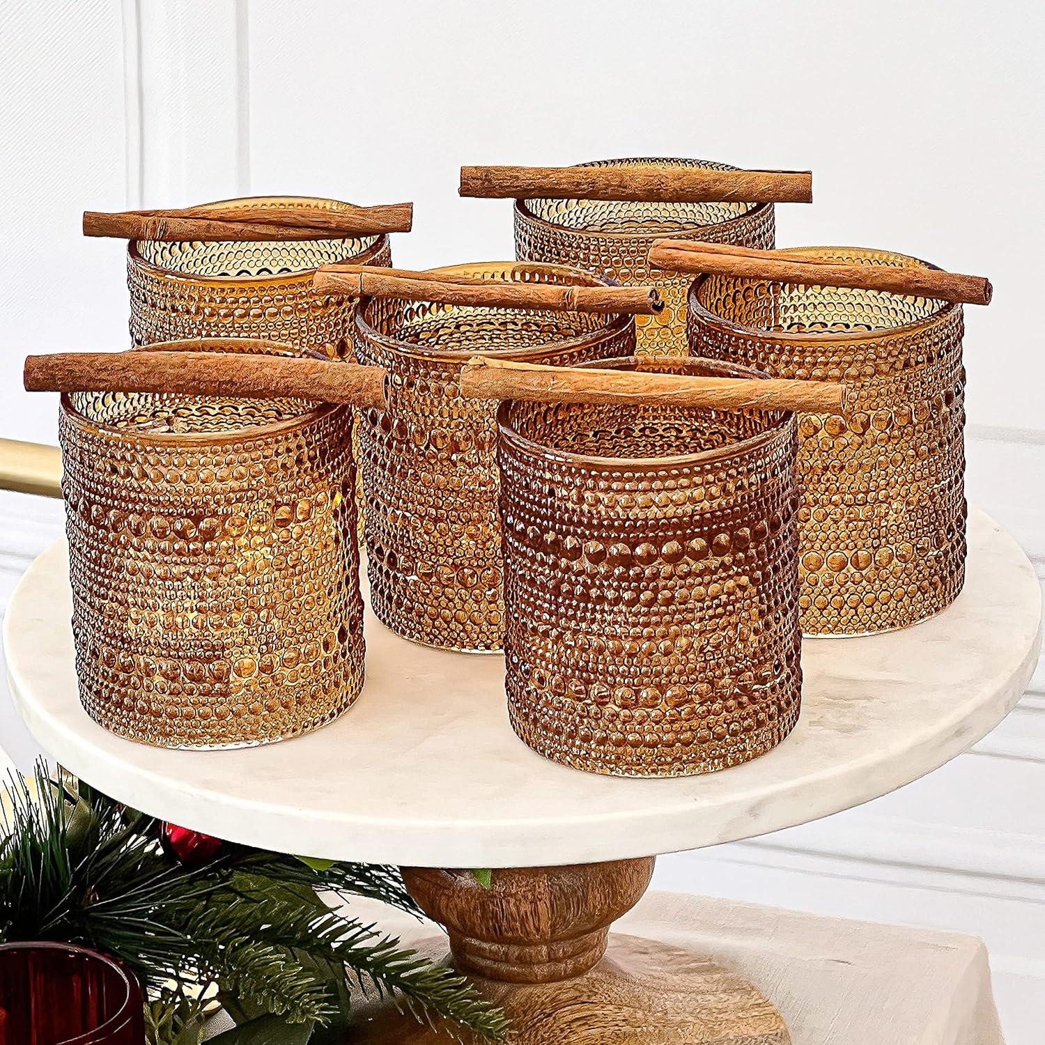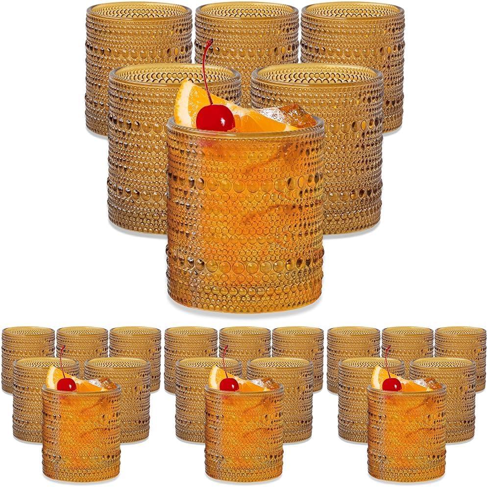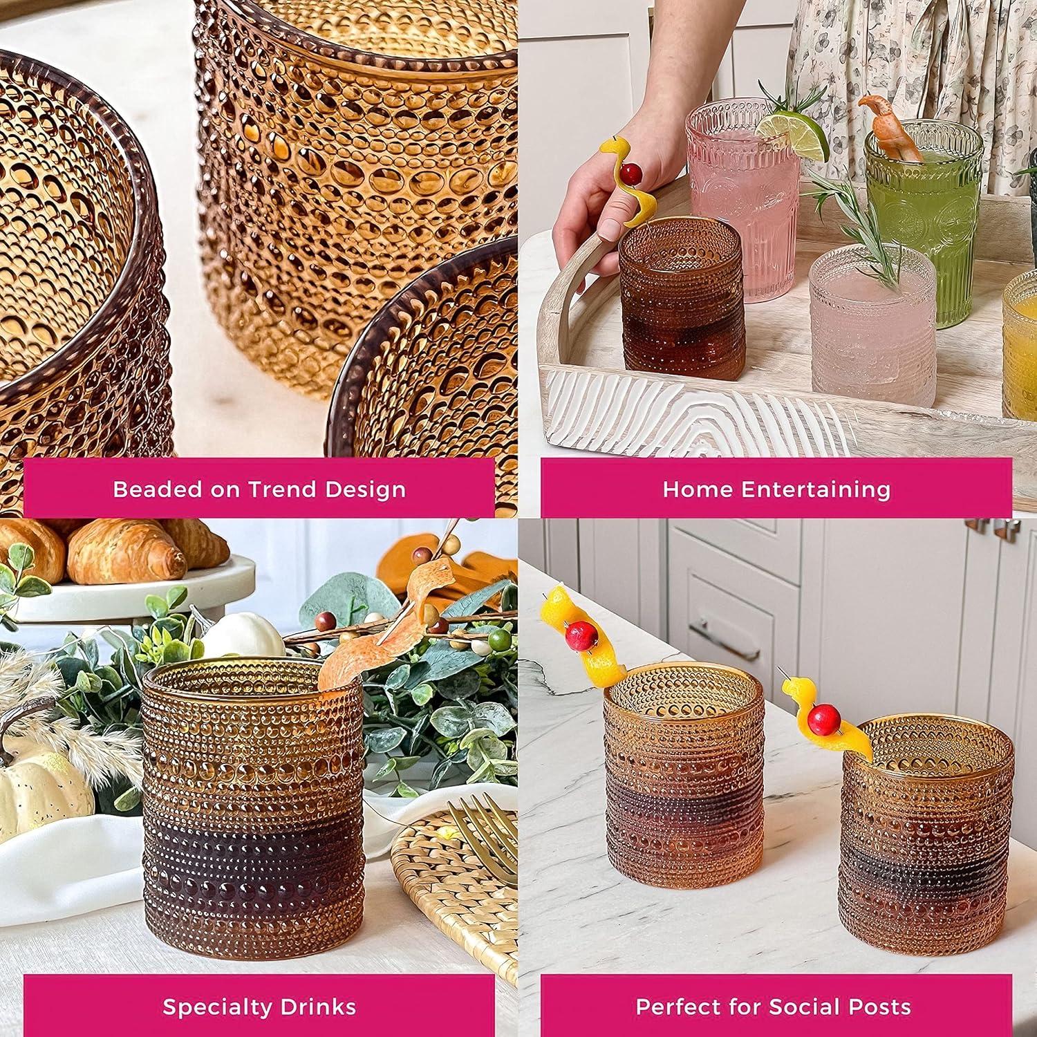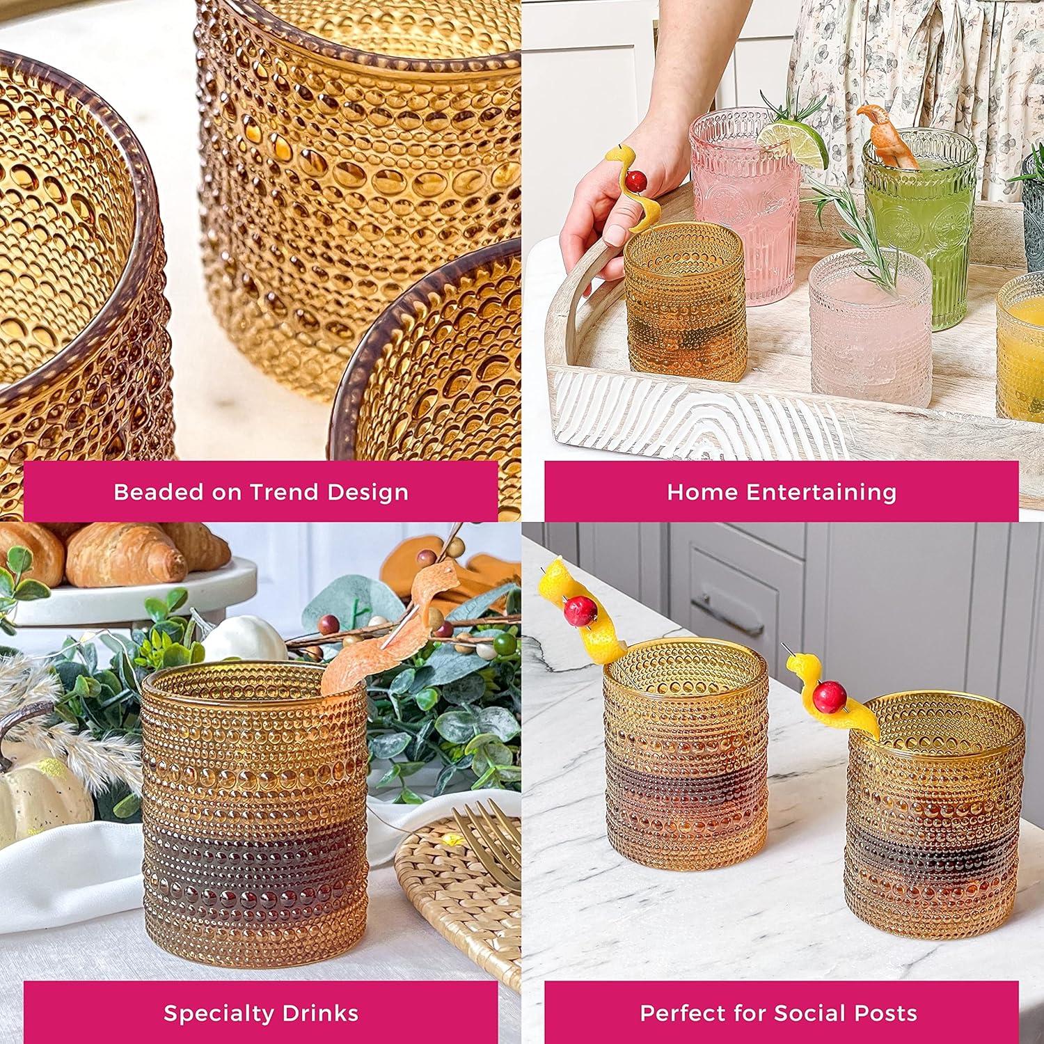 Kate Aspen Sage Green Hobnail Beaded Drinking Glasses Set of 6-10 oz Vintage Glassware Set Cocktail Glass Set, Juice Glass, Water Cups | Makes A Great Hostess Gift or Gift for New Home Owners(Amber)
