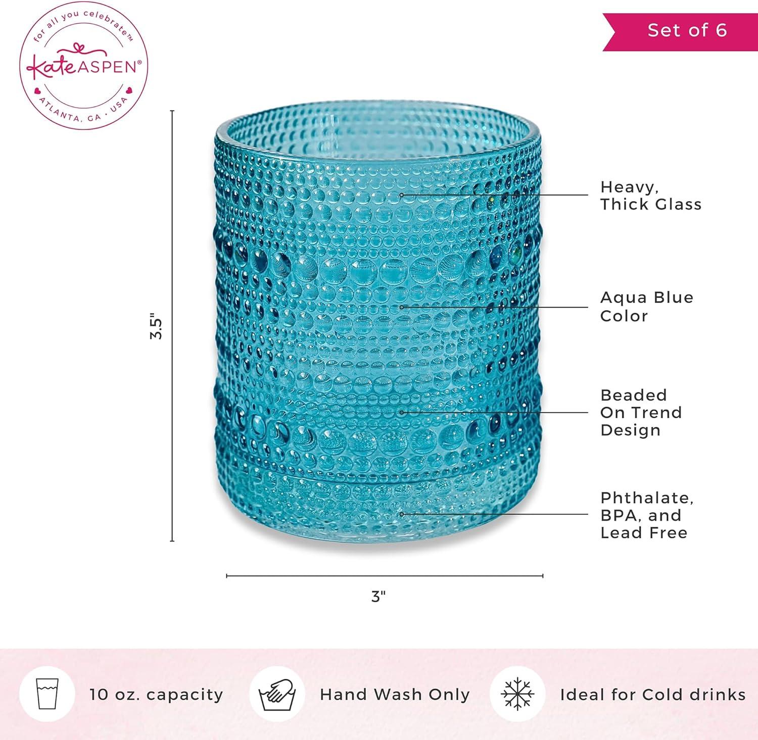 Kate Aspen Sage Green Hobnail Beaded Drinking Glasses Set of 6-10 oz Vintage Glassware Set Cocktail Glass Set, Juice Glass, Water Cups | Makes A Great Hostess Gift or Gift for New Home Owners(Aqua Blue)