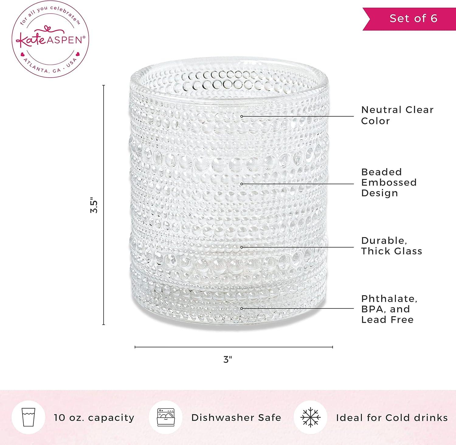 Kate Aspen Sage Green Hobnail Beaded Drinking Glasses Set of 6-10 oz Vintage Glassware Set Cocktail Glass Set, Juice Glass, Water Cups | Makes A Great Hostess Gift or Gift for New Home Owners(Clear)