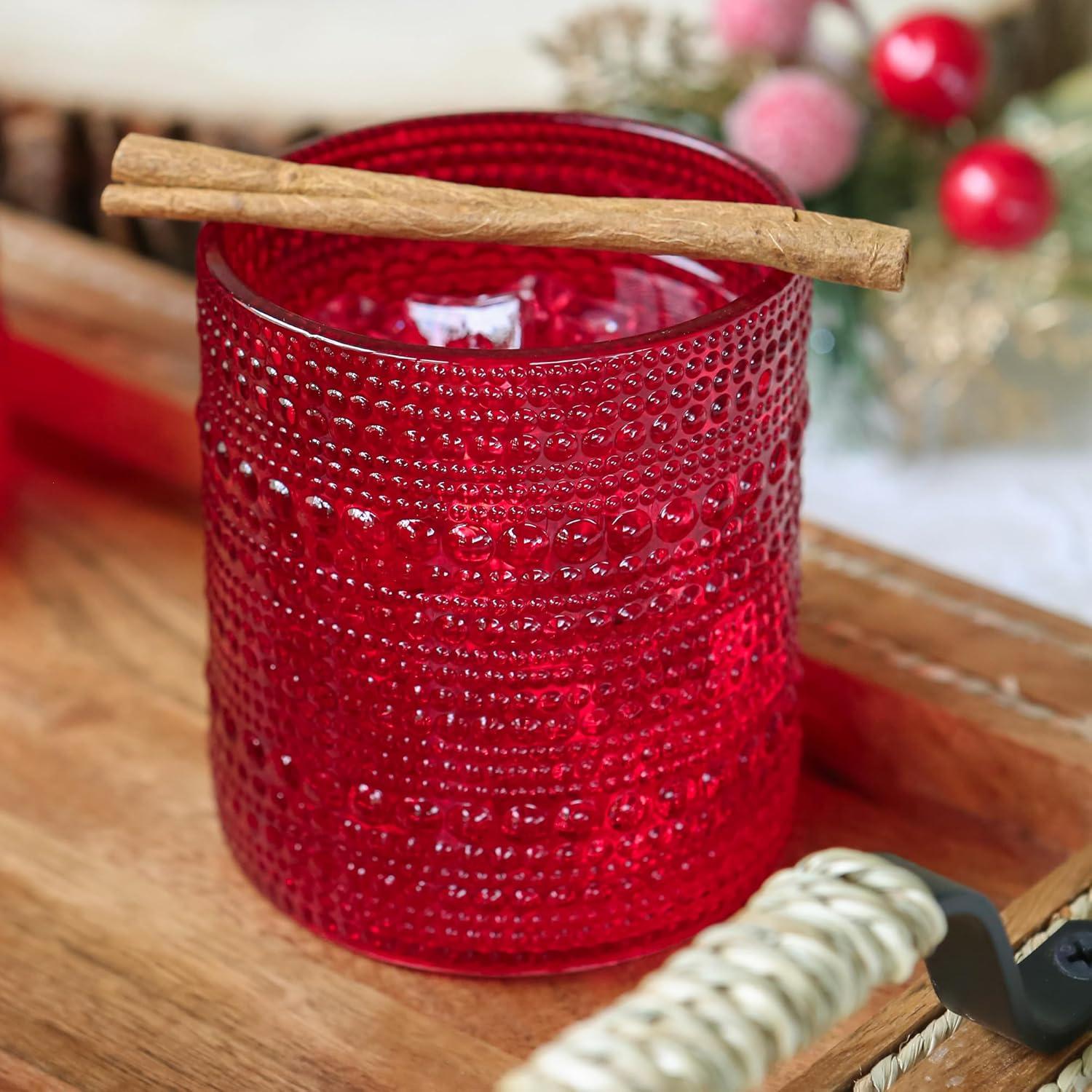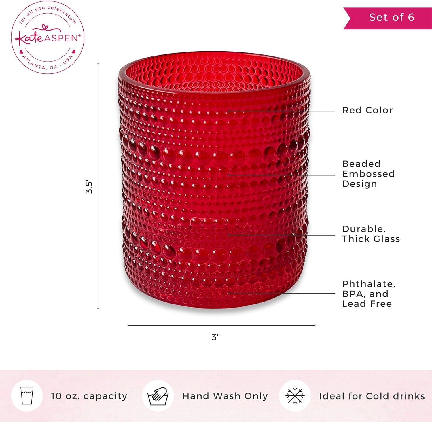 Kate Aspen Sage Green Hobnail Beaded Drinking Glasses Set of 6-10 oz Vintage Glassware Set Cocktail Glass Set, Juice Glass, Water Cups | Makes A Great Hostess Gift or Gift for New Home Owners(Red)