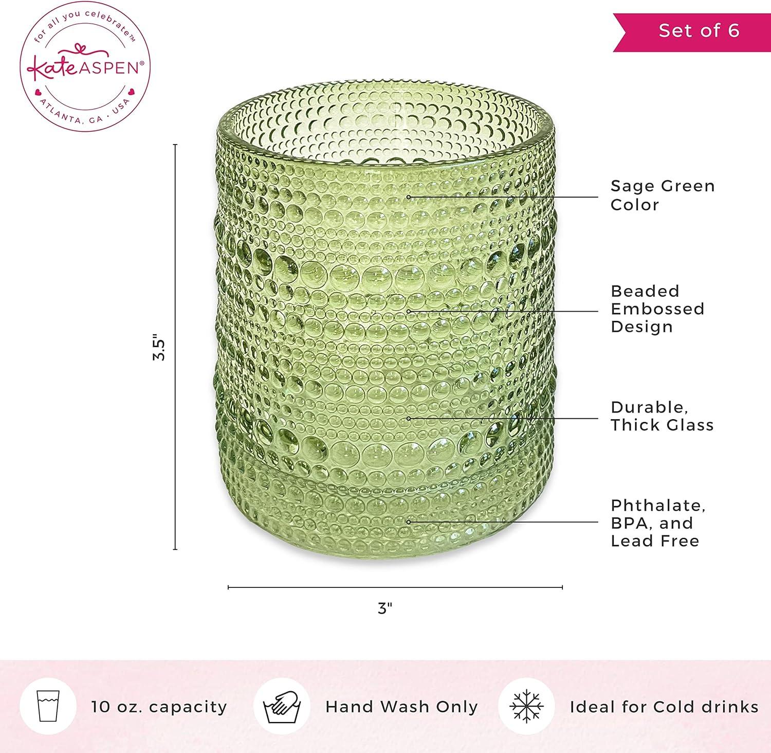 Kate Aspen Sage Green Hobnail Beaded Drinking Glasses Set of 6-10 oz Vintage Glassware Set Cocktail Glass Set, Juice Glass, Water Cups | Makes A Great Hostess Gift or Gift for New Home Owners(Sage Green)