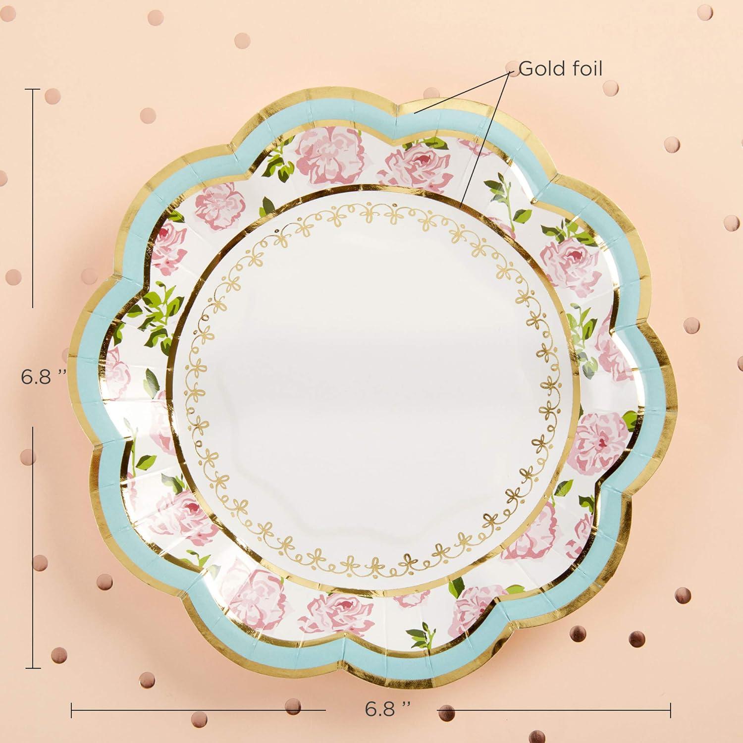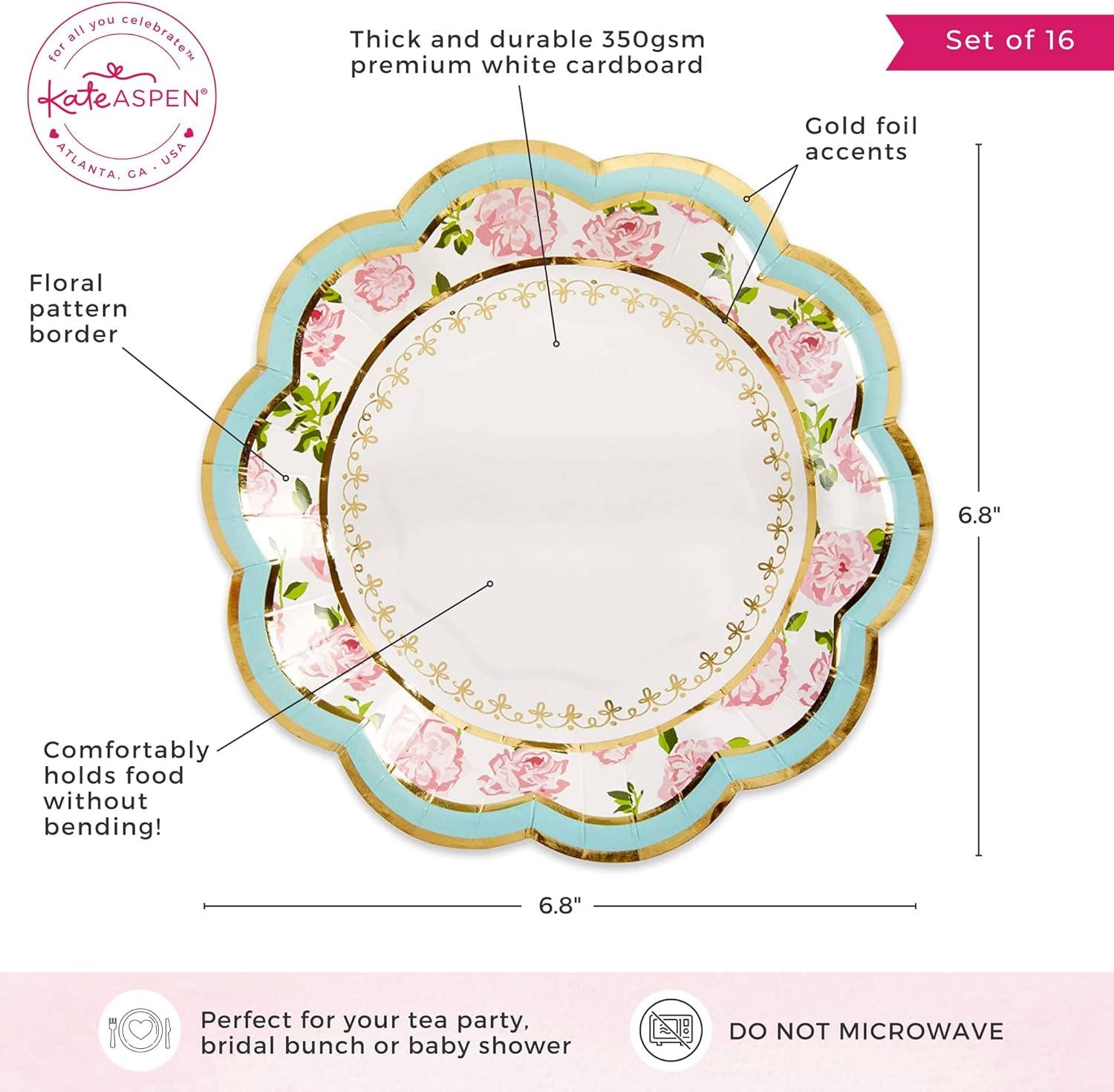 Kate Aspen Sage Green Party Decorations, Eucalyptus Floral Print 7 in. Decorative Premium Paper Plates (350 GSM weight -Set of 16) – Perfect for Greenery Baby Shower & Bridal Showers(Blue Floral Tea Party)