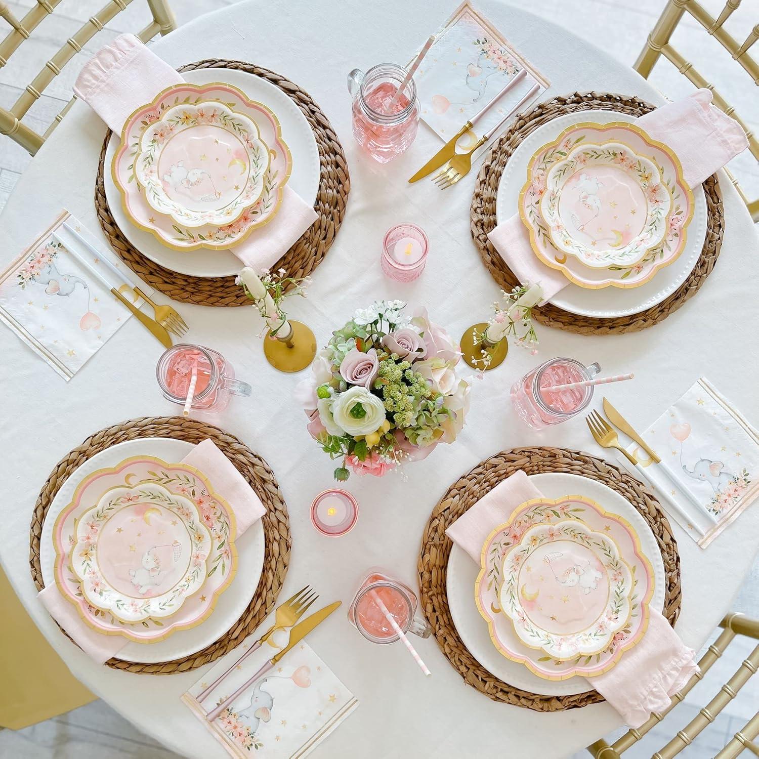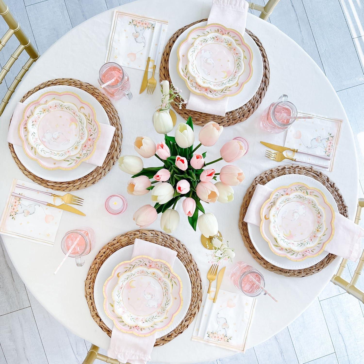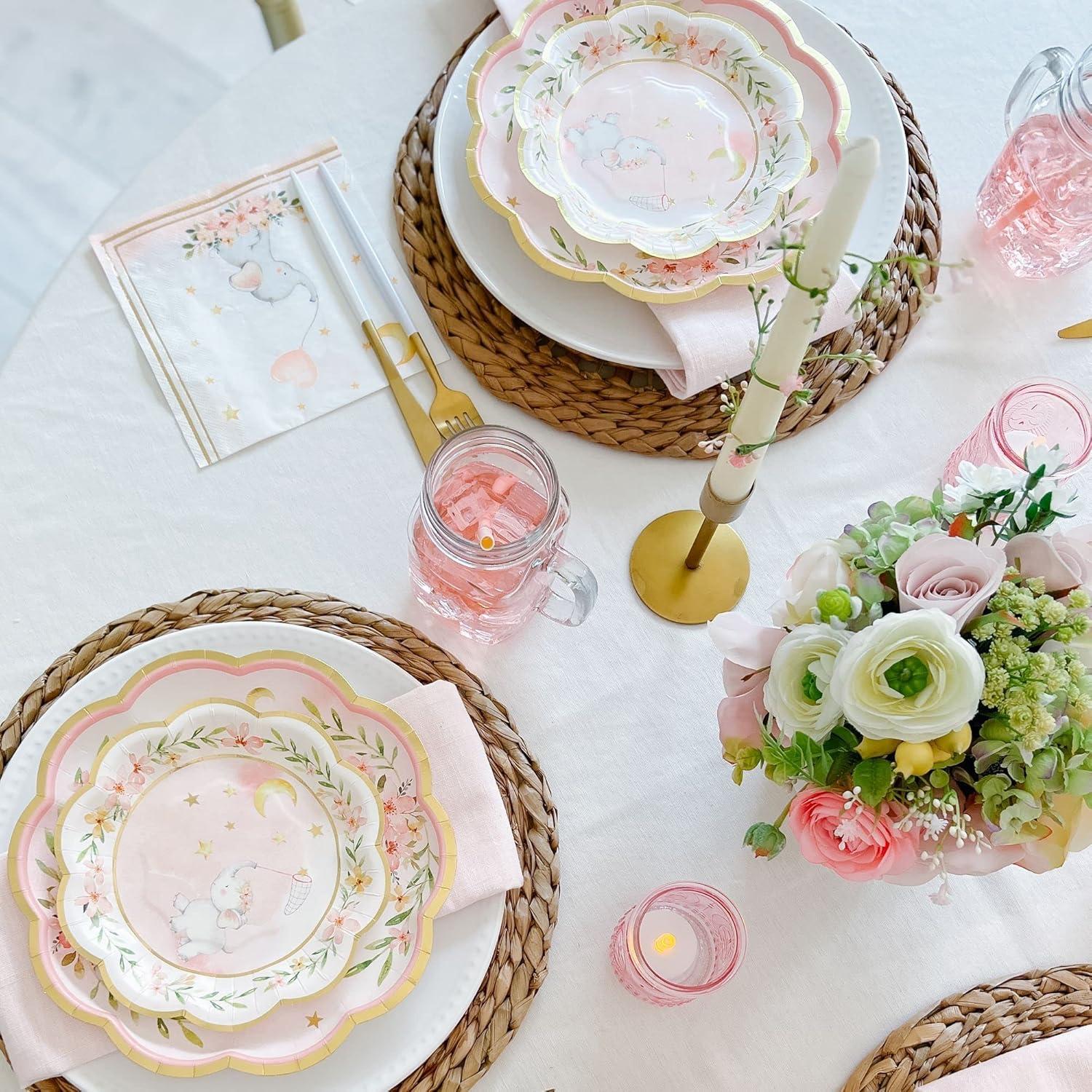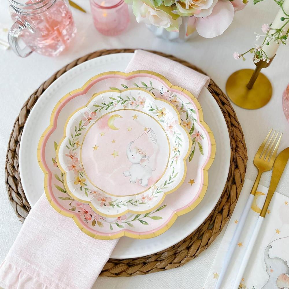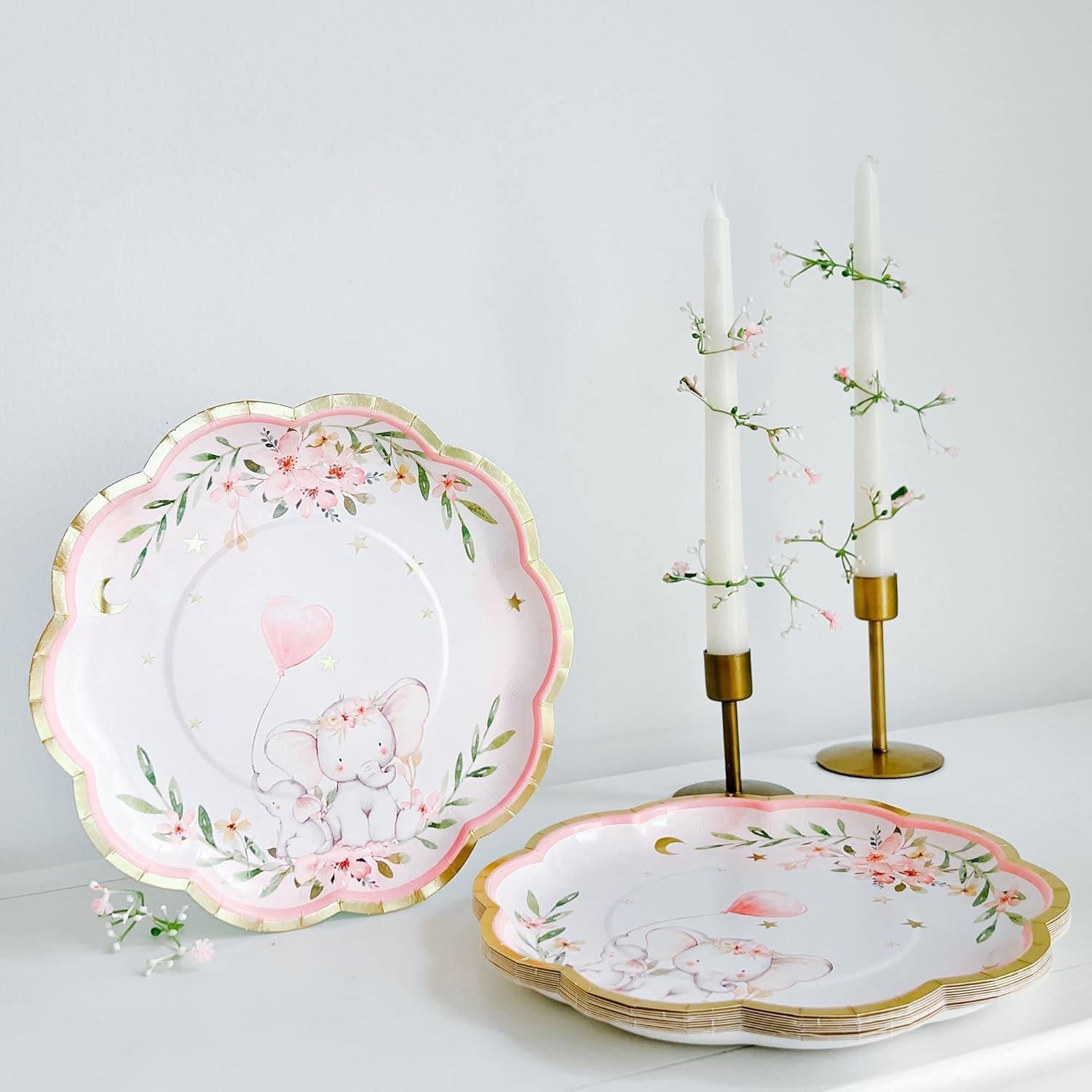 Kate Aspen Sage Green Party Decorations, Eucalyptus Floral Print 7 in. Decorative Premium Paper Plates (350 GSM weight -Set of 16) – Perfect for Greenery Baby Shower & Bridal Showers(Pink Elephant)