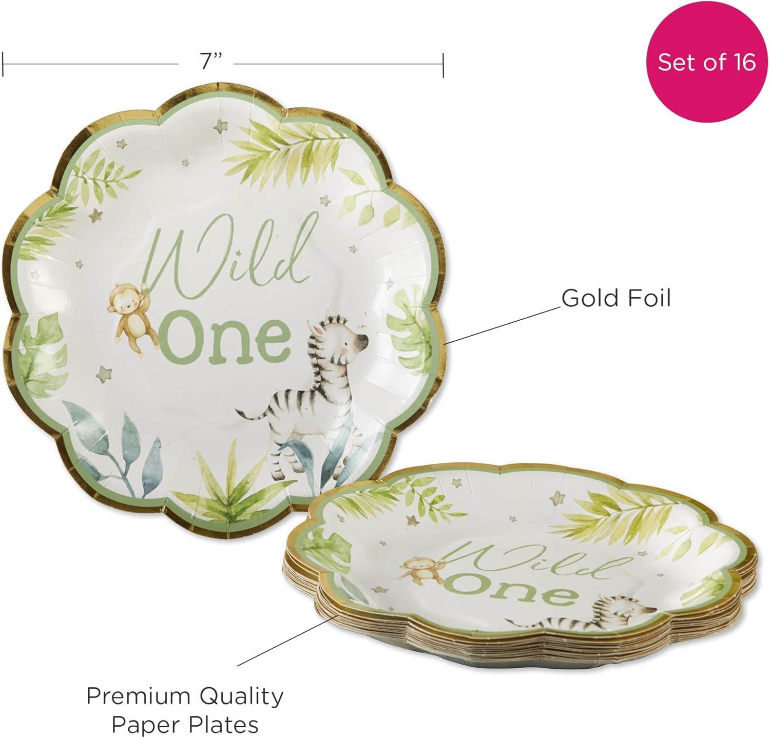 Kate Aspen Sage Green Party Decorations, Eucalyptus Floral Print 7 in. Decorative Premium Paper Plates (350 GSM weight -Set of 16) – Perfect for Greenery Baby Shower & Bridal Showers(Safari)
