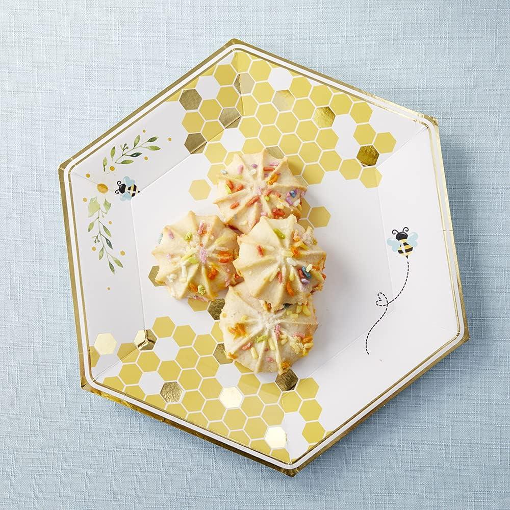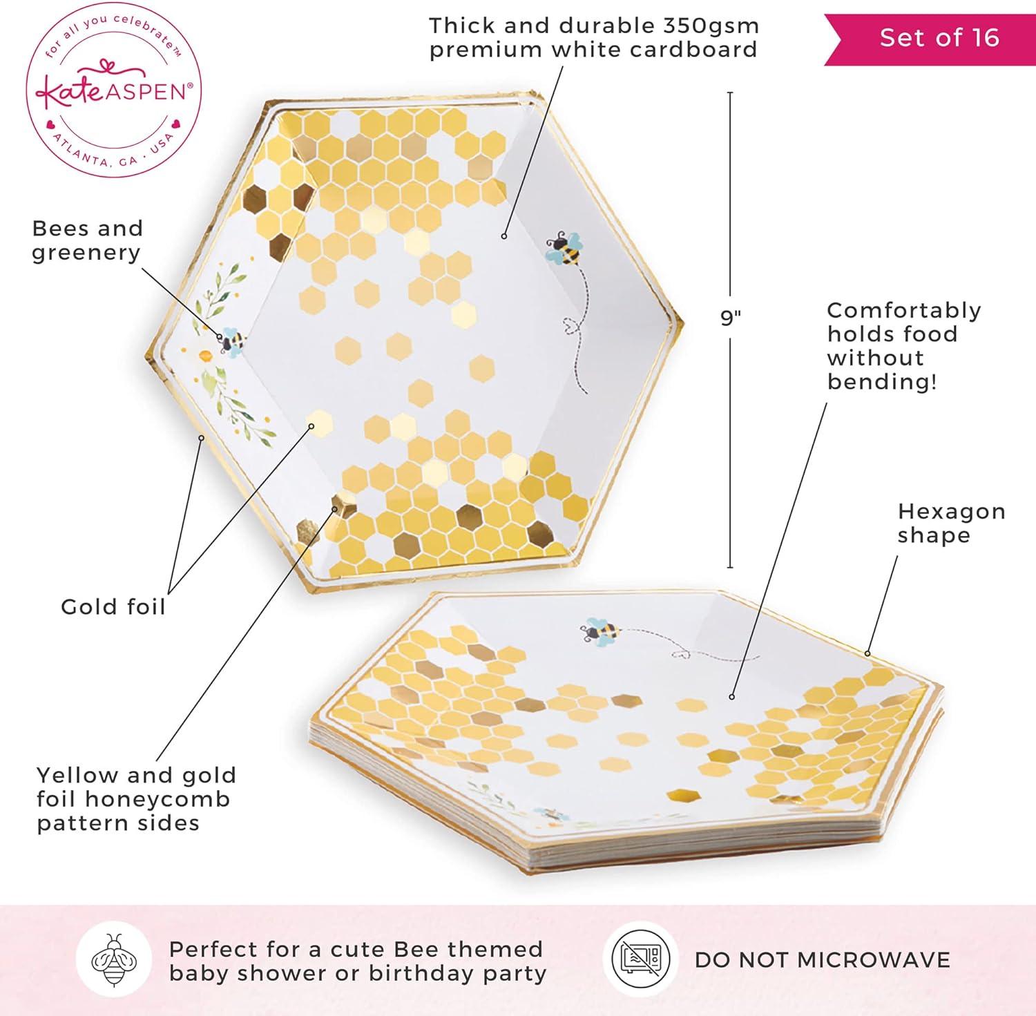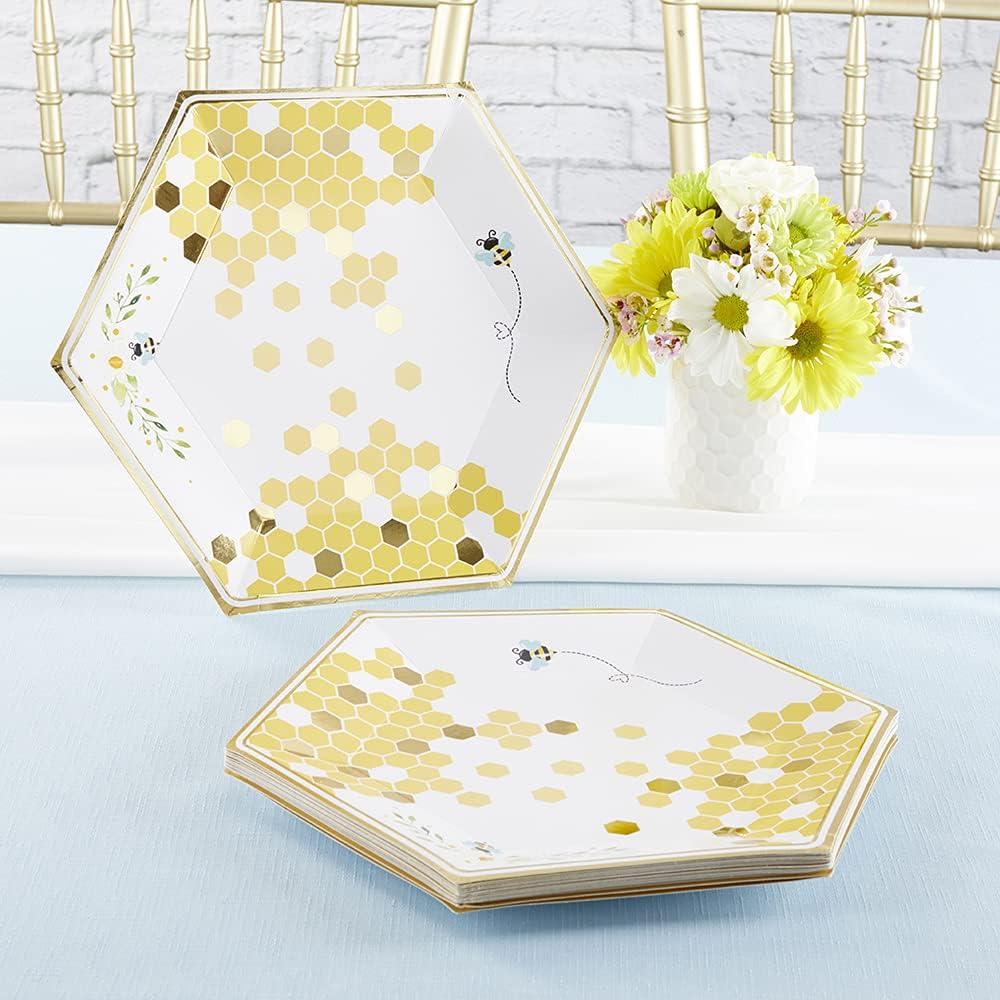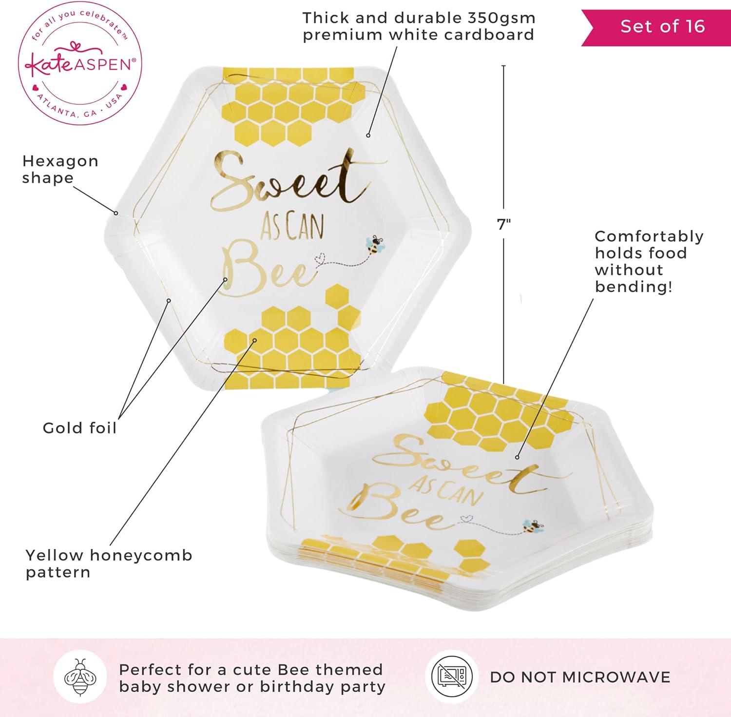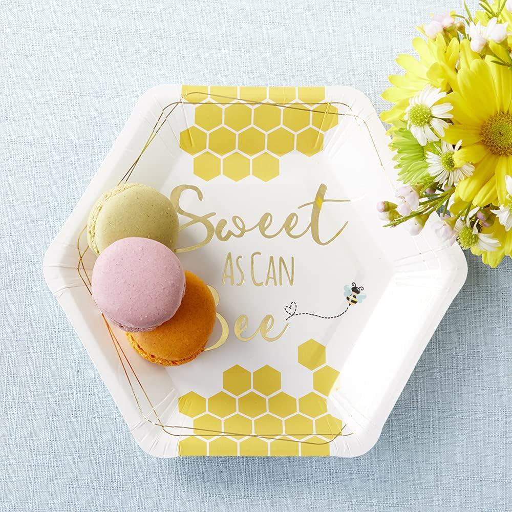 Kate Aspen Sage Green Party Decorations, Eucalyptus Floral Print 7 in. Decorative Premium Paper Plates (350 GSM weight -Set of 16) – Perfect for Greenery Baby Shower & Bridal Showers(Sweet As Can Bee)