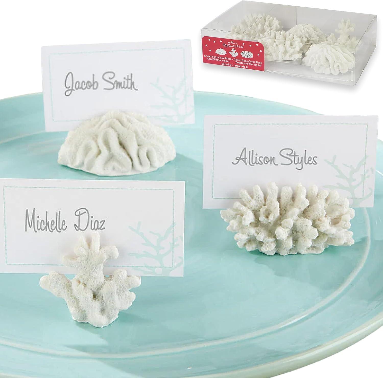 Coastal Coral Place Card Holders For Elegant Wedding Decor – Add refined coastal beauty to your wedding decor or nautical-themed party with these coral-inspired place card holders from Kate Aspen. Designed for seaside receptions, beach table decor, and rustic wedding decor, these holders enhance card table displays, buffet arrangements, and guest seating areas with an organic sea-inspired touch that's perfect for celebrations with a coastal theme or beach themed fla