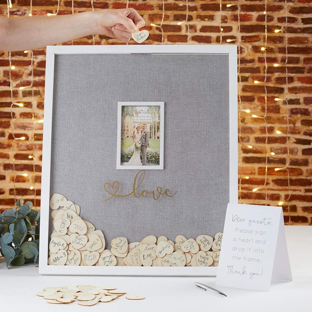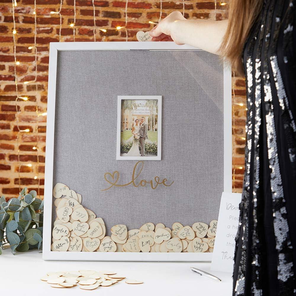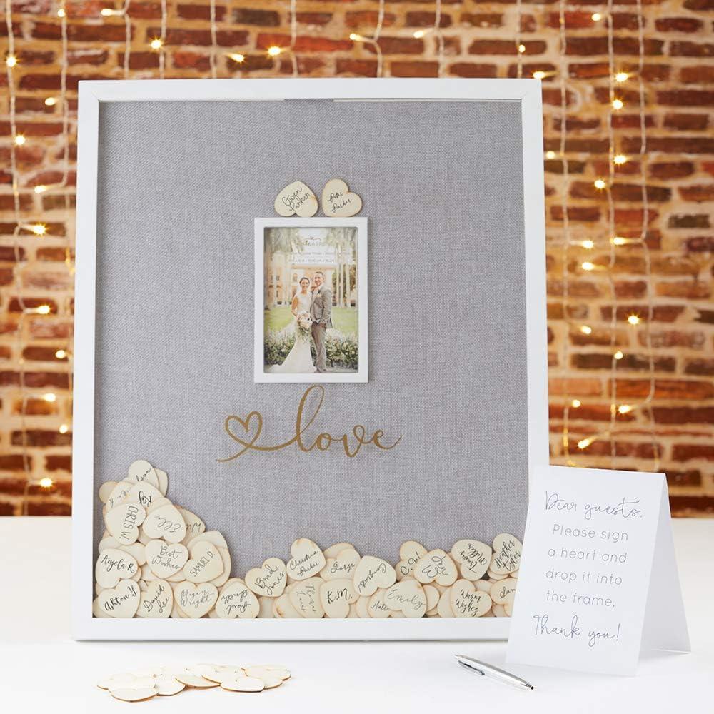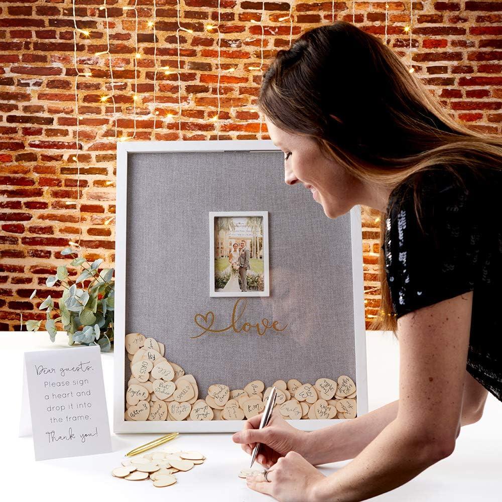 Kate Aspen wedding guest book alternative globe is the travel theme wedding addition that you'll love for many years to come! With a globe Shadow box frame and 100 wooden hearts included, Every guest can immortalize their presence at your big day with this wedding guest book alternative. After the wedding is through, the globe printed frame will display all of your guest signatures alongside a “our adventure begins” Message located at the top of the frame. The wedding guest book alternative globe is packaged up in a gift box for simple transport to your wedding location!