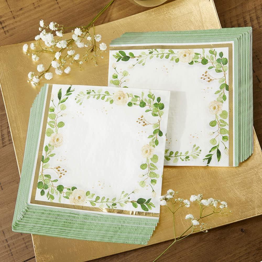 Kate Aspen Woodland Baby Shower Decorative Paper Napkins, Thick Decorative Dinner Napkins, Luncheon Serveware, 2 ply, 30 Count (Pack of 1)(Sage Green Eucalyptus)